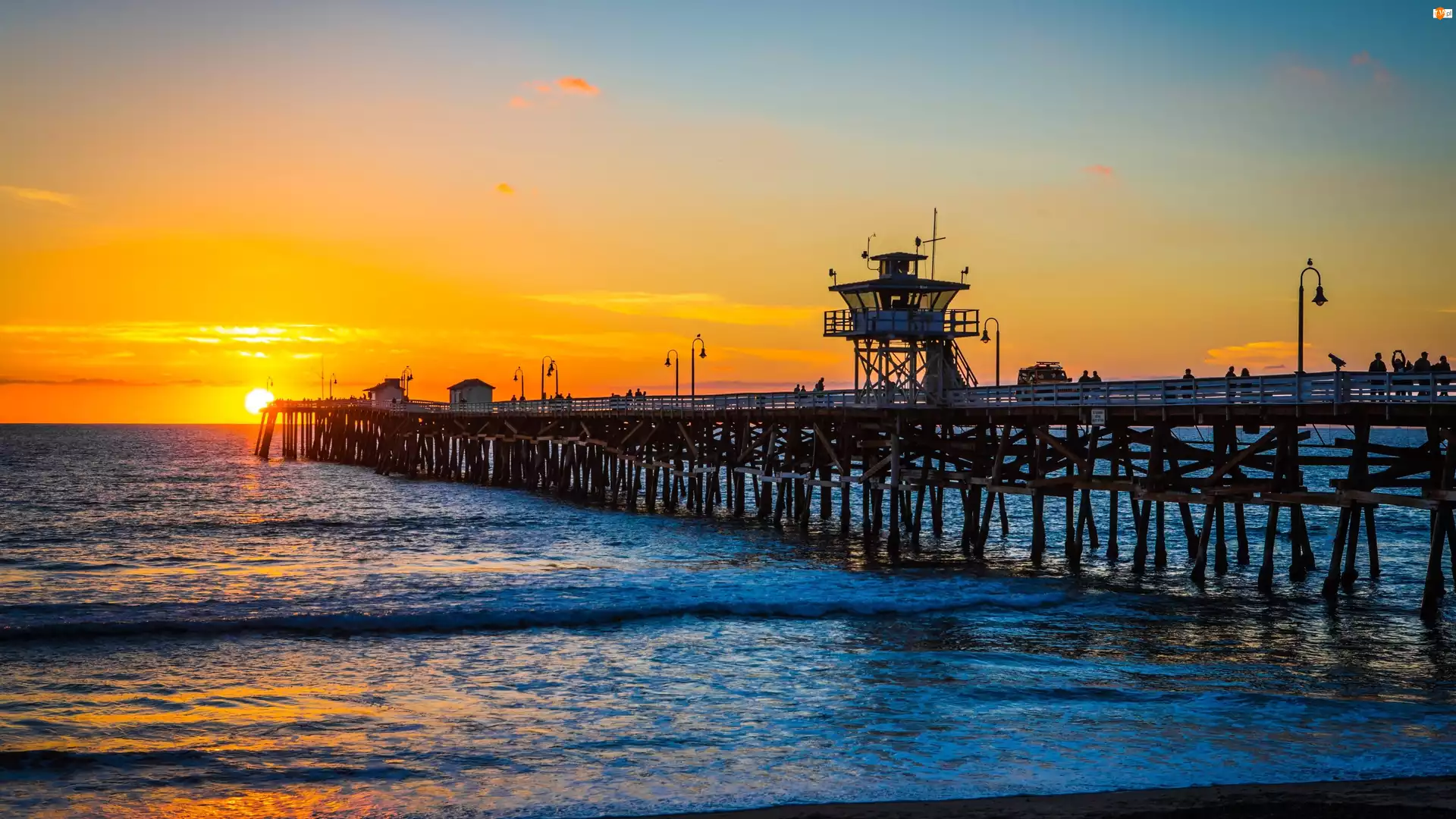 Morze, Słońca, Molo, Zachód