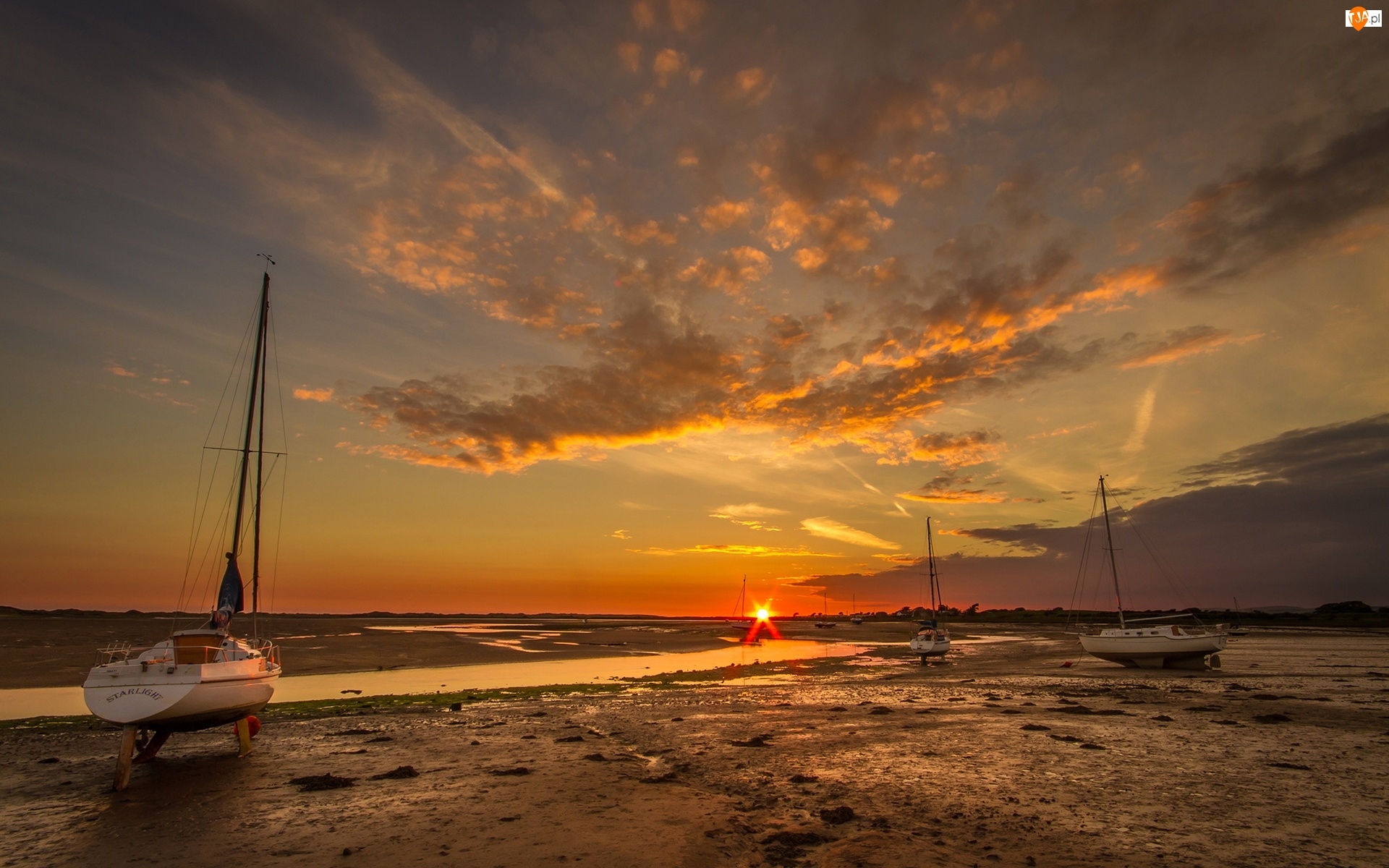 Morze, Slonca, Niebo, Jacht, Chmury, Zachod