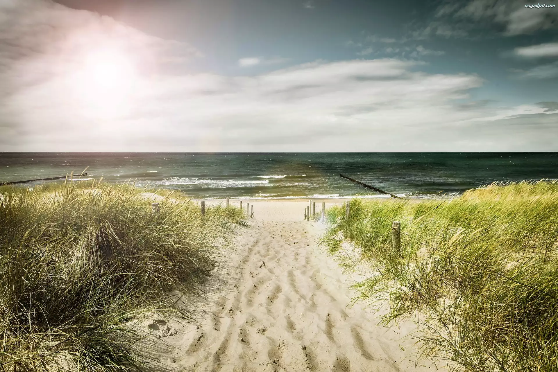 Morze, Trawy, Plaża, Wydmy