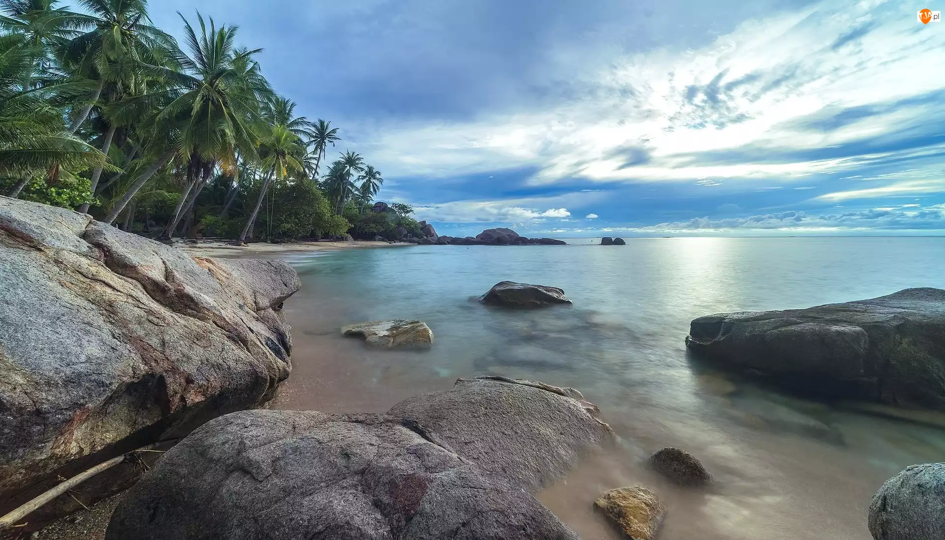 Morze, Tajlandia, Prowincja Surat Thani, Kamienie, Ocean Spokojny, wyspa Ko Tao, Palmy, Zatoka Tajlandzka