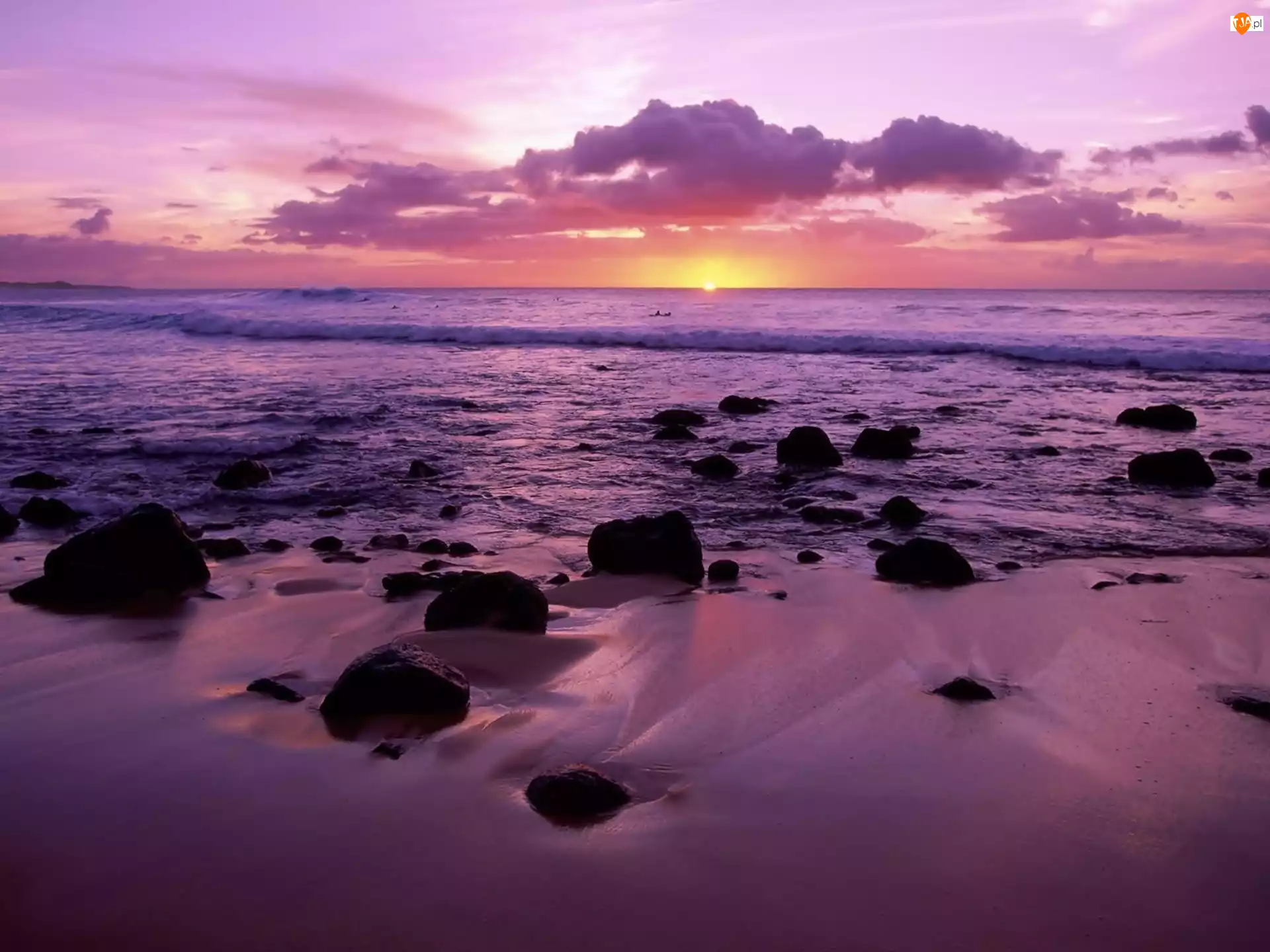 Morze, Zachód Słońca, Kamienie