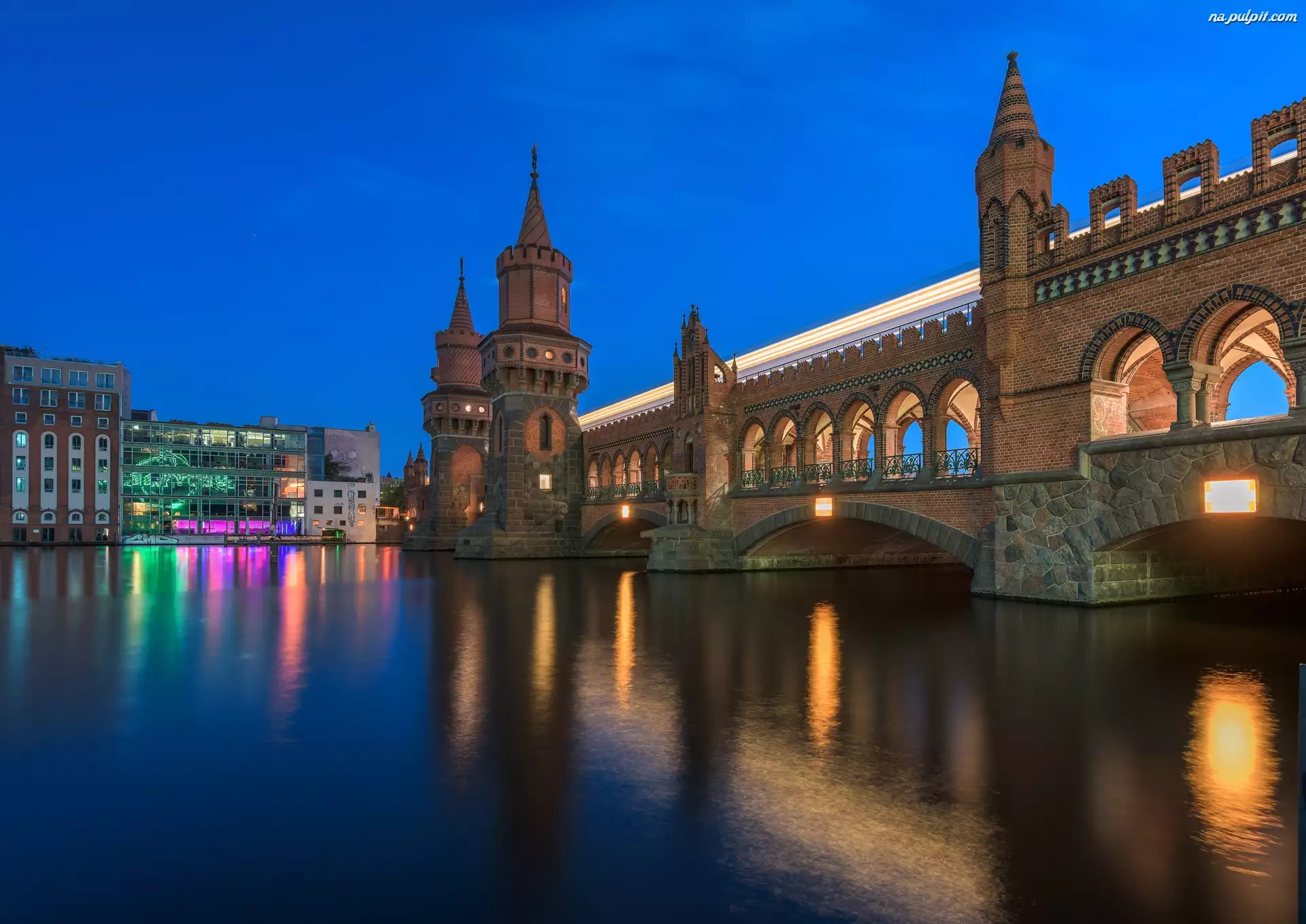 Most, Budynki , Niemcy, Noc, Berlin, Rzeka