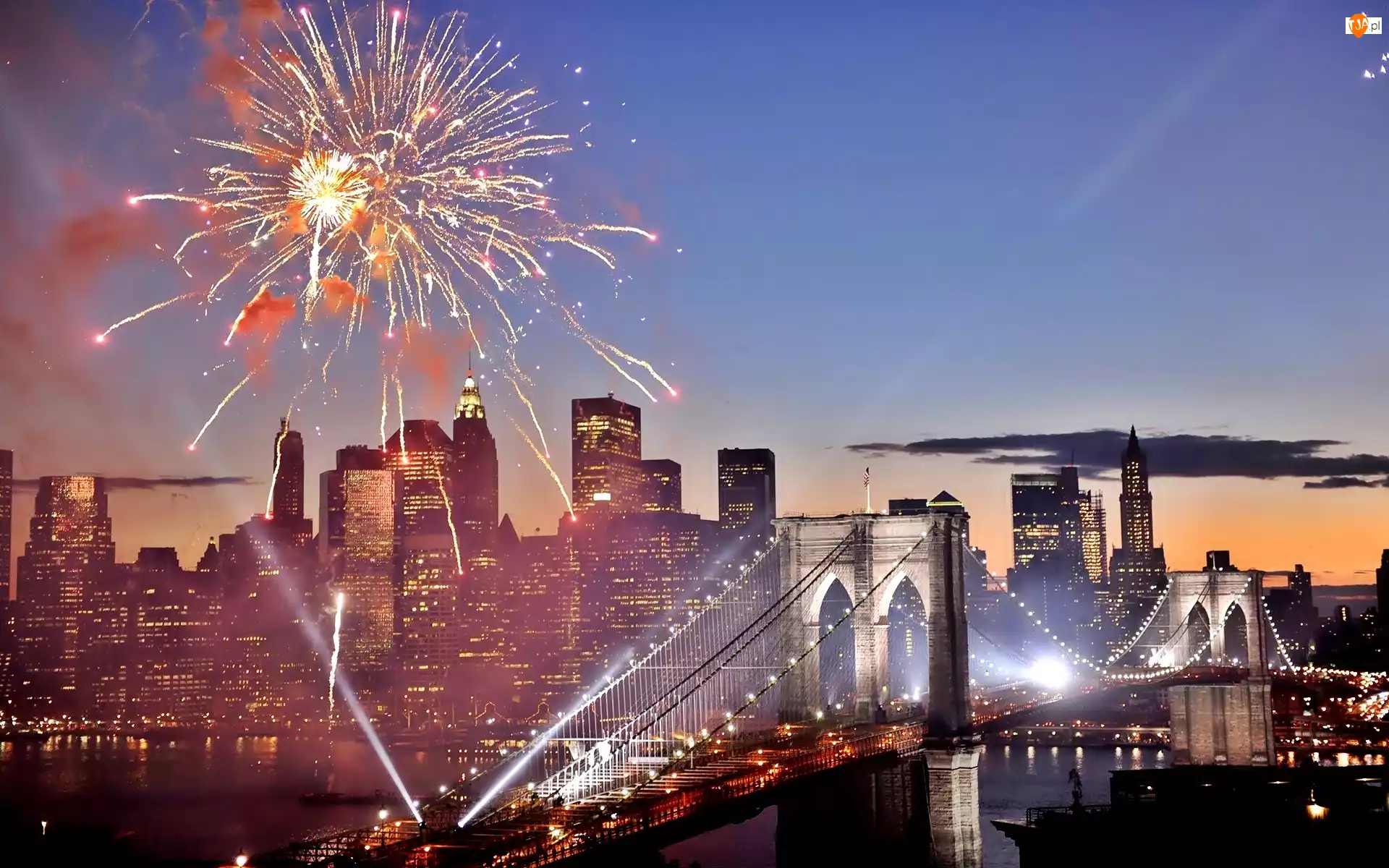 Most, Drapacze Chmur, Miasta, Fajerwerki, Nocą, R