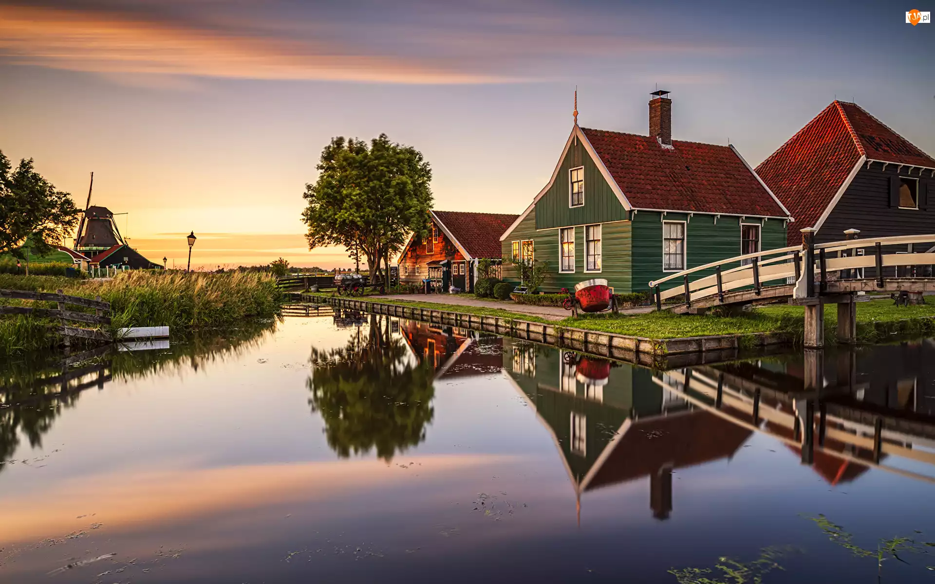 Most, Holandia, Zaanse Schans, Domy, Zaandam, Rzek