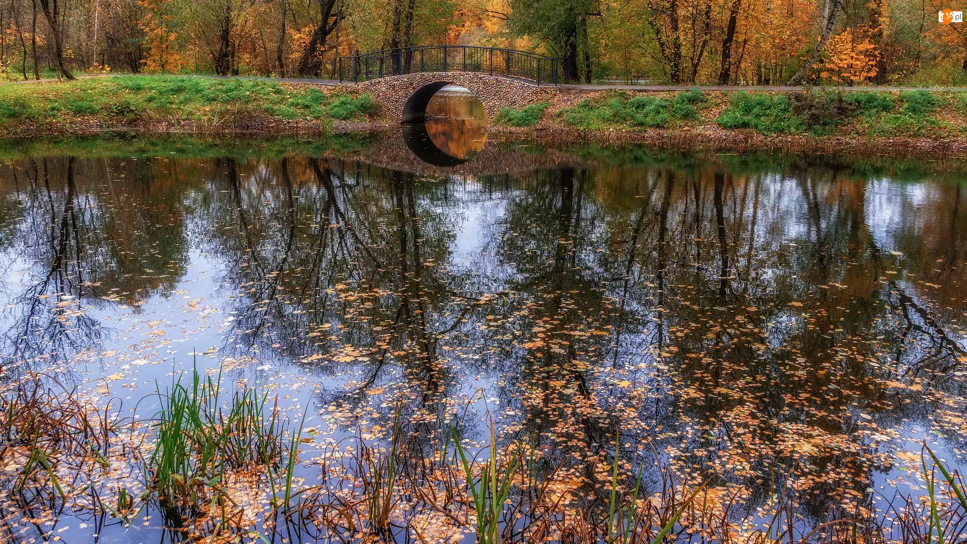 Mostek, Trawa, Kamienny, Jesień, Rzeka