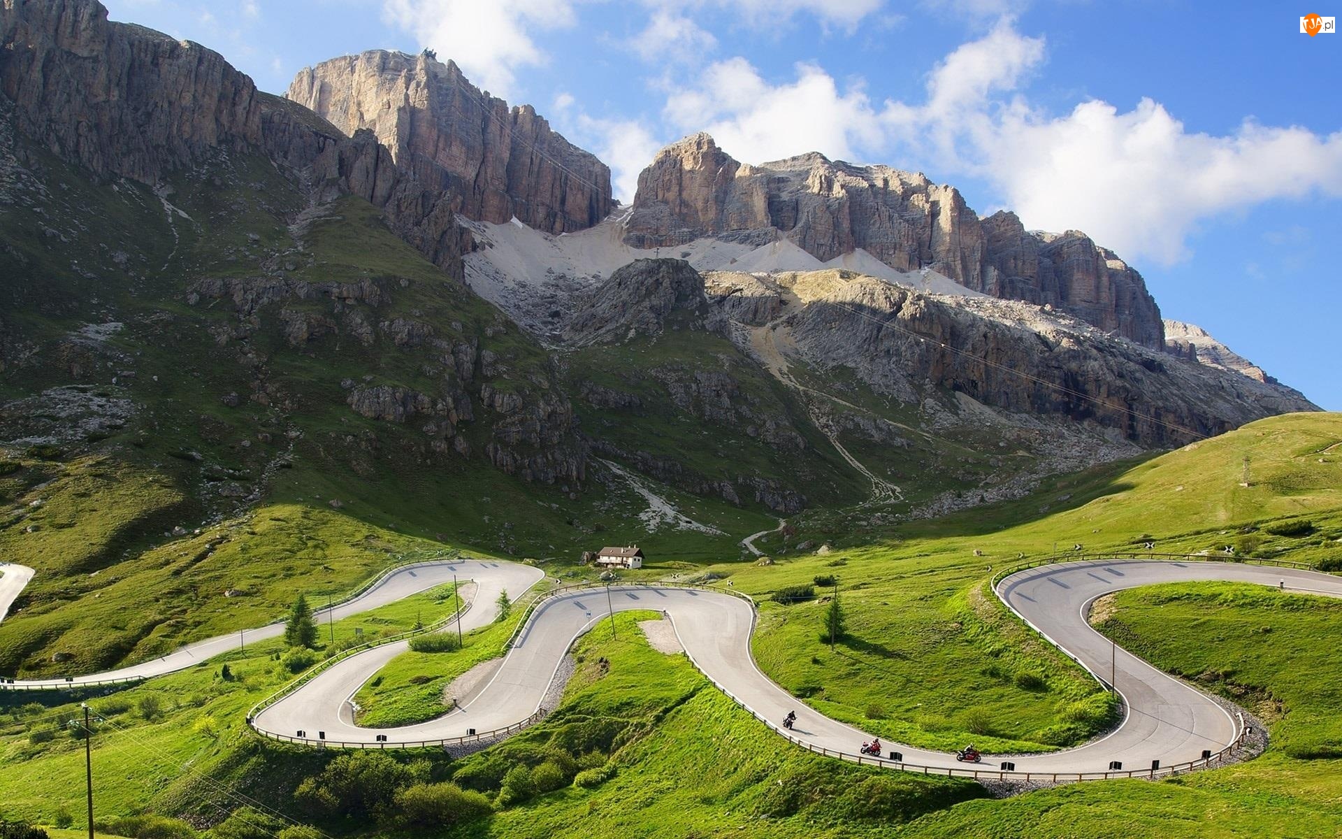 Motocykle, Góry, Droga, Dom, Serpentyny