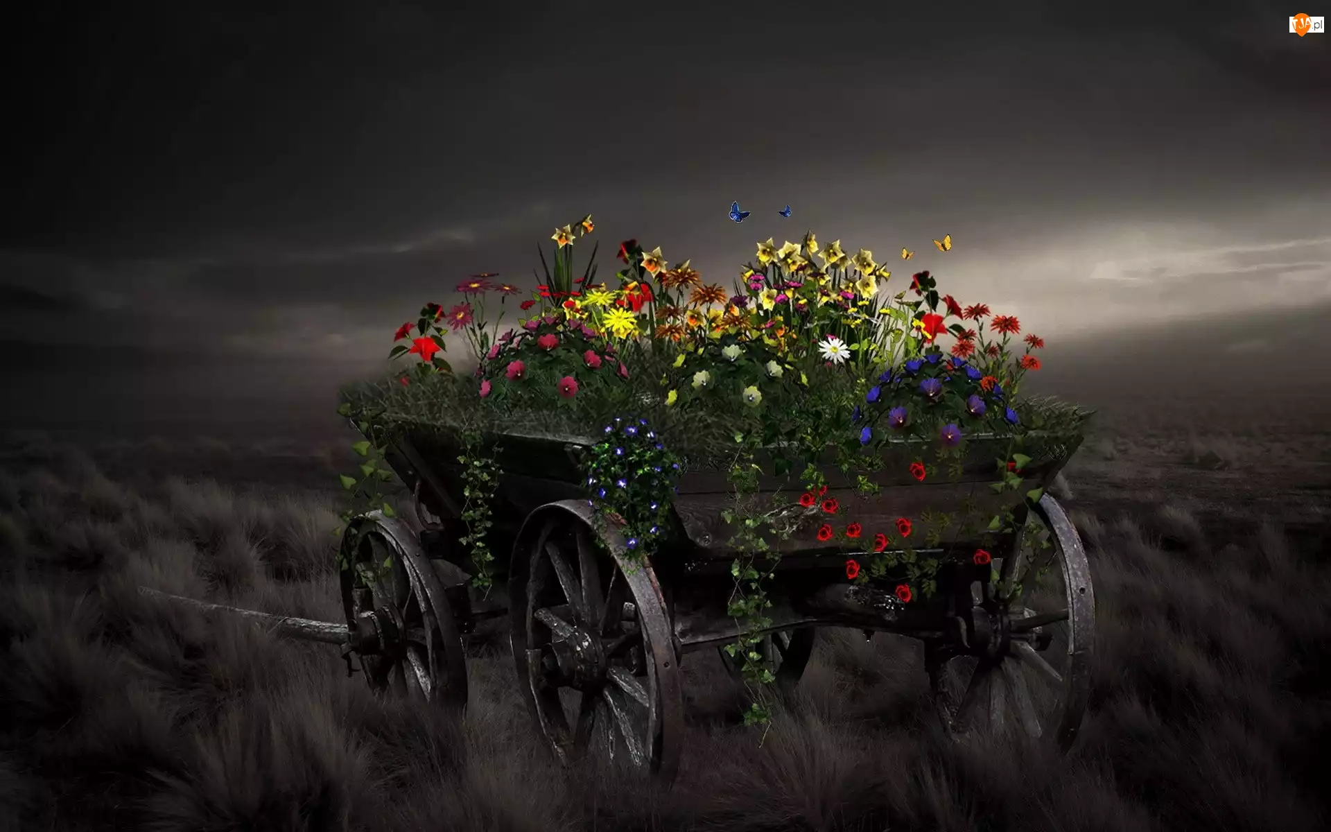 Motyle, Wóz, Kwiaty