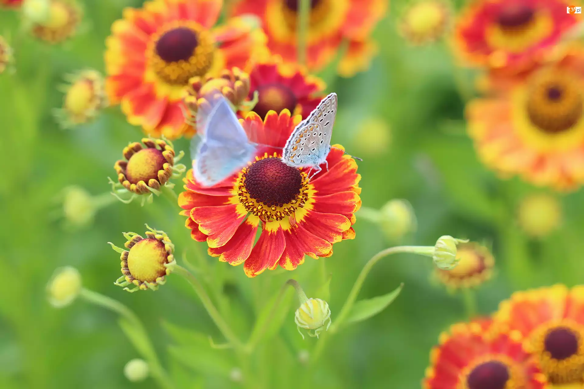 Modraszki, Dzielżan ogrodowy, Kwiaty, Czerwone, Motyle