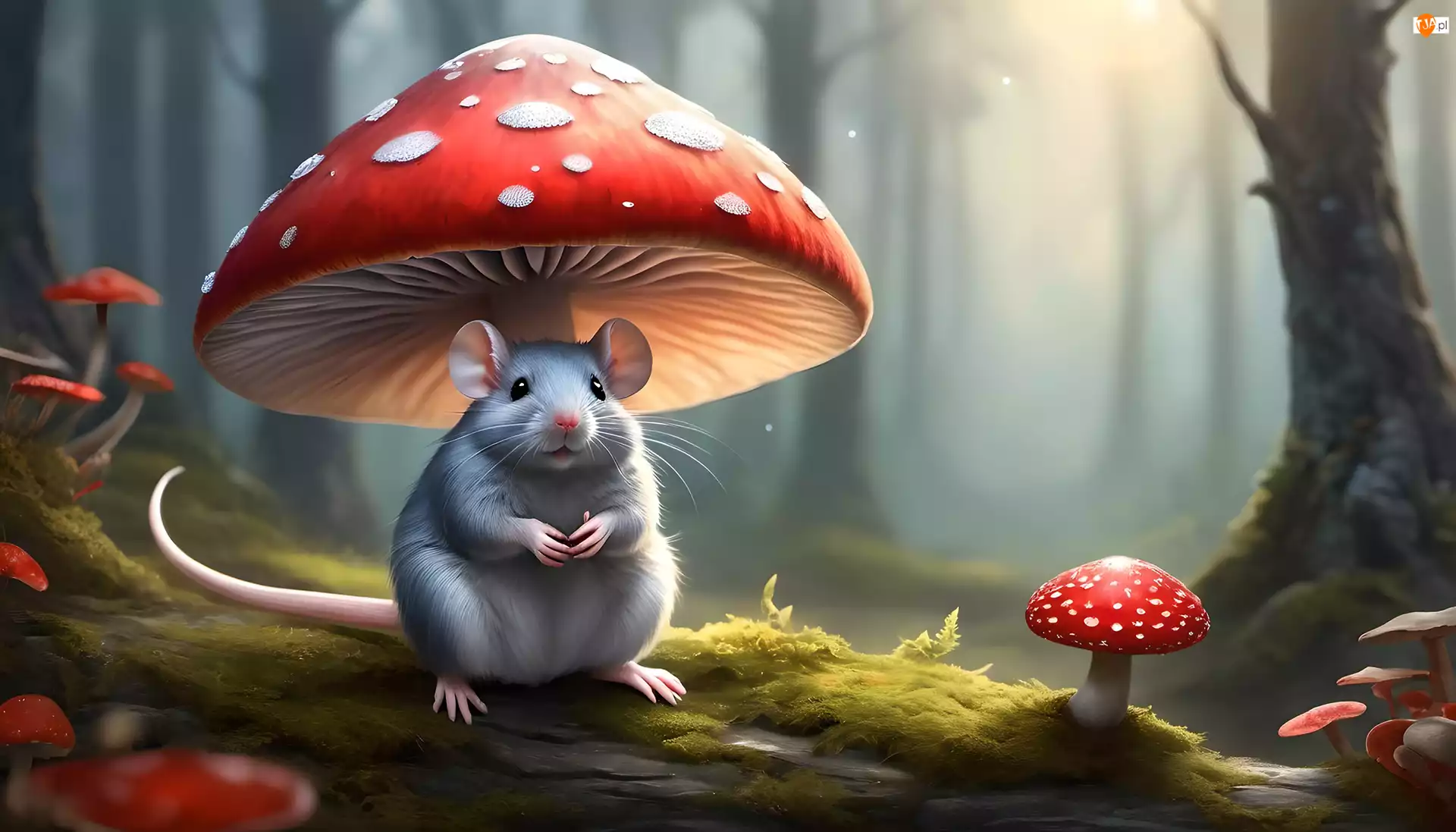 Muchomory, Grafika, Mysz, Szara, Grzyby