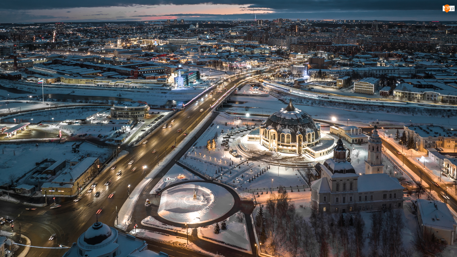 Oświetlone, Rosja, Tuła, Muzeum broni, Obwód tulski, Zima, Drogi, Miasto