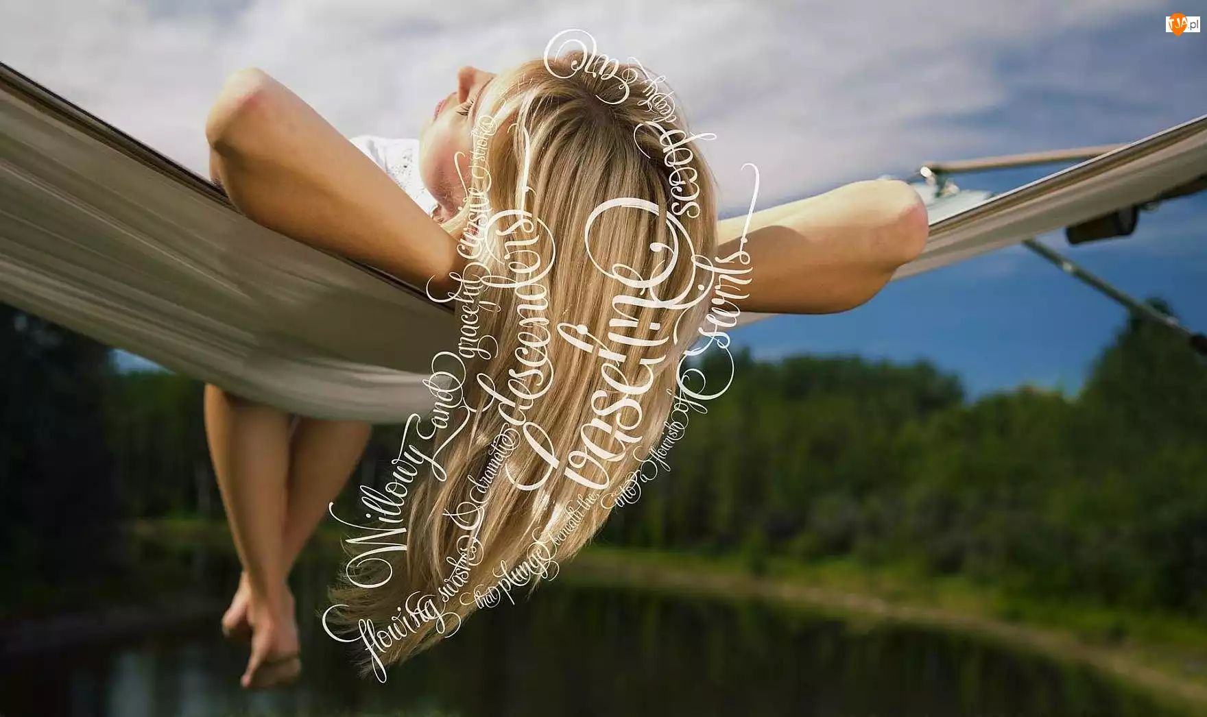 Myśli, Hamak, Blondynka, Dziewczyna, Napisy