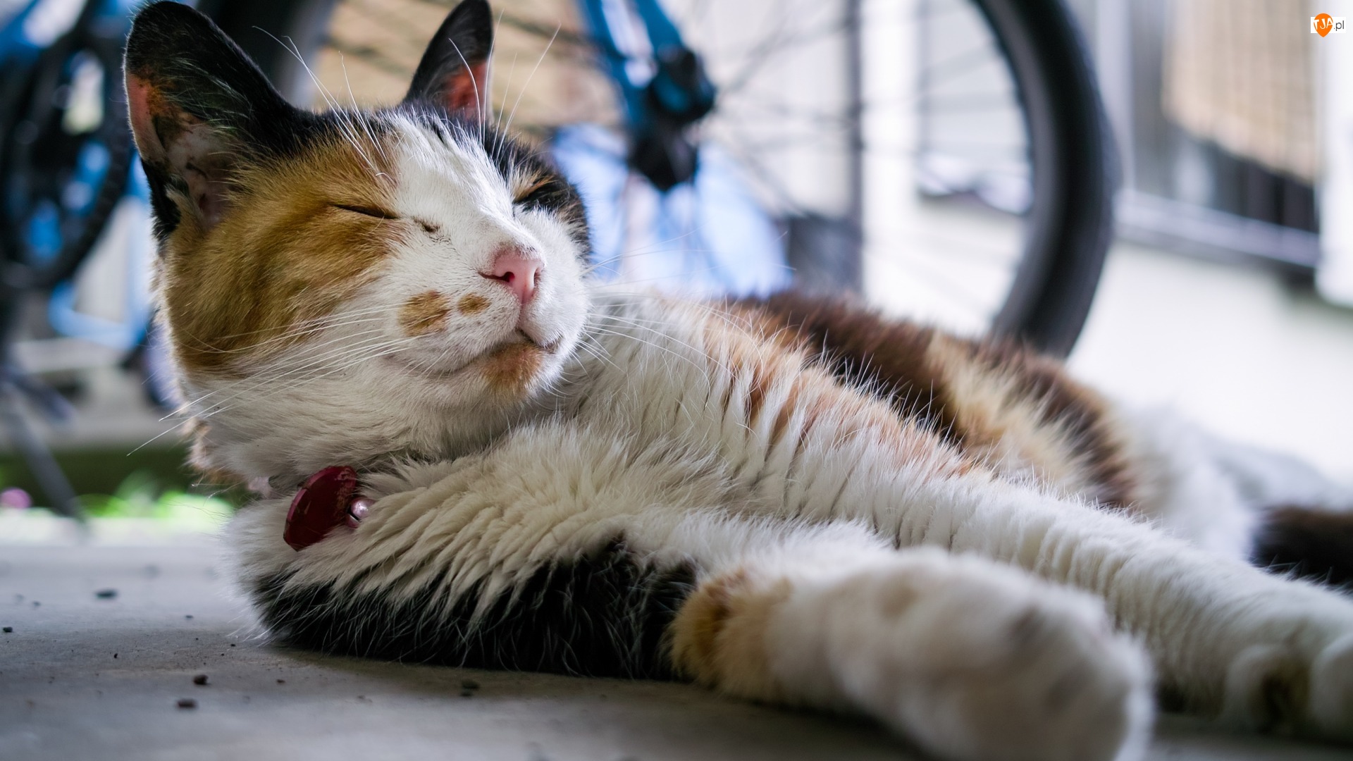 na chodniku leży śpiący kot