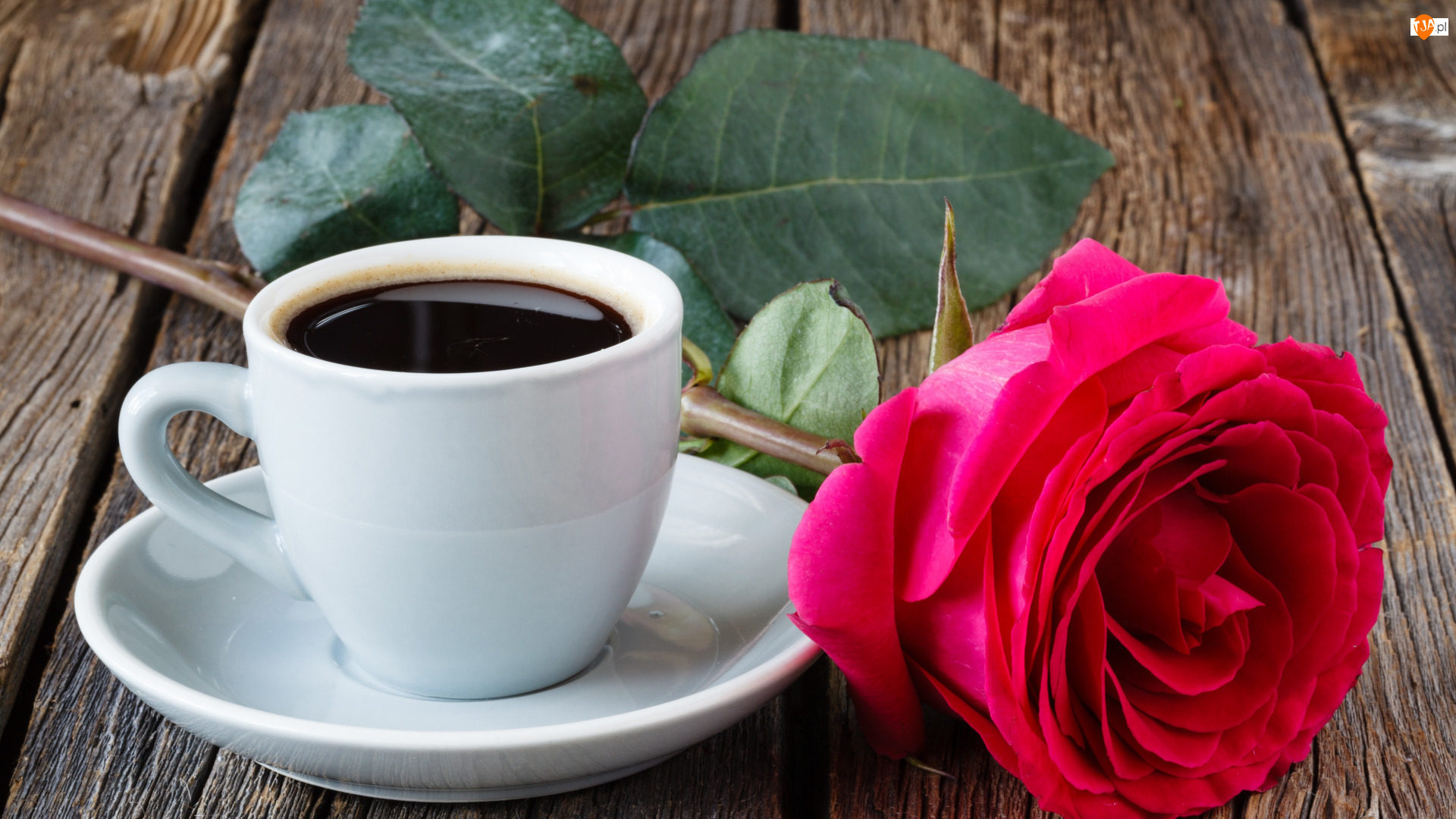 Czerwona, Kwiat, Filiżanka, Kawa, Róża, Spodek