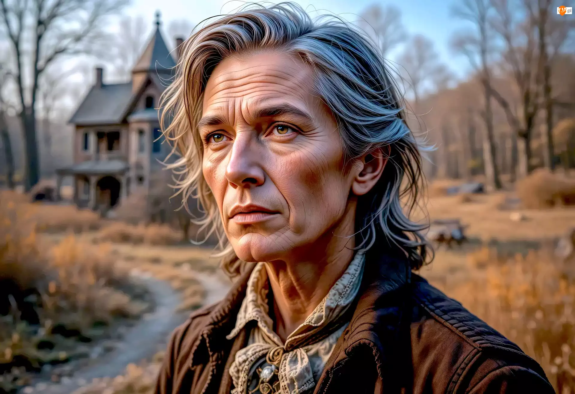 Dom, Grafika AI, Twarz, Kobieta, Drzewa