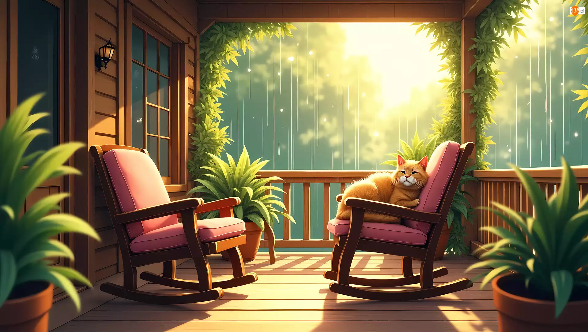 Tarad, Dom, Kot, Doniczki, Fotele, Kwiaty