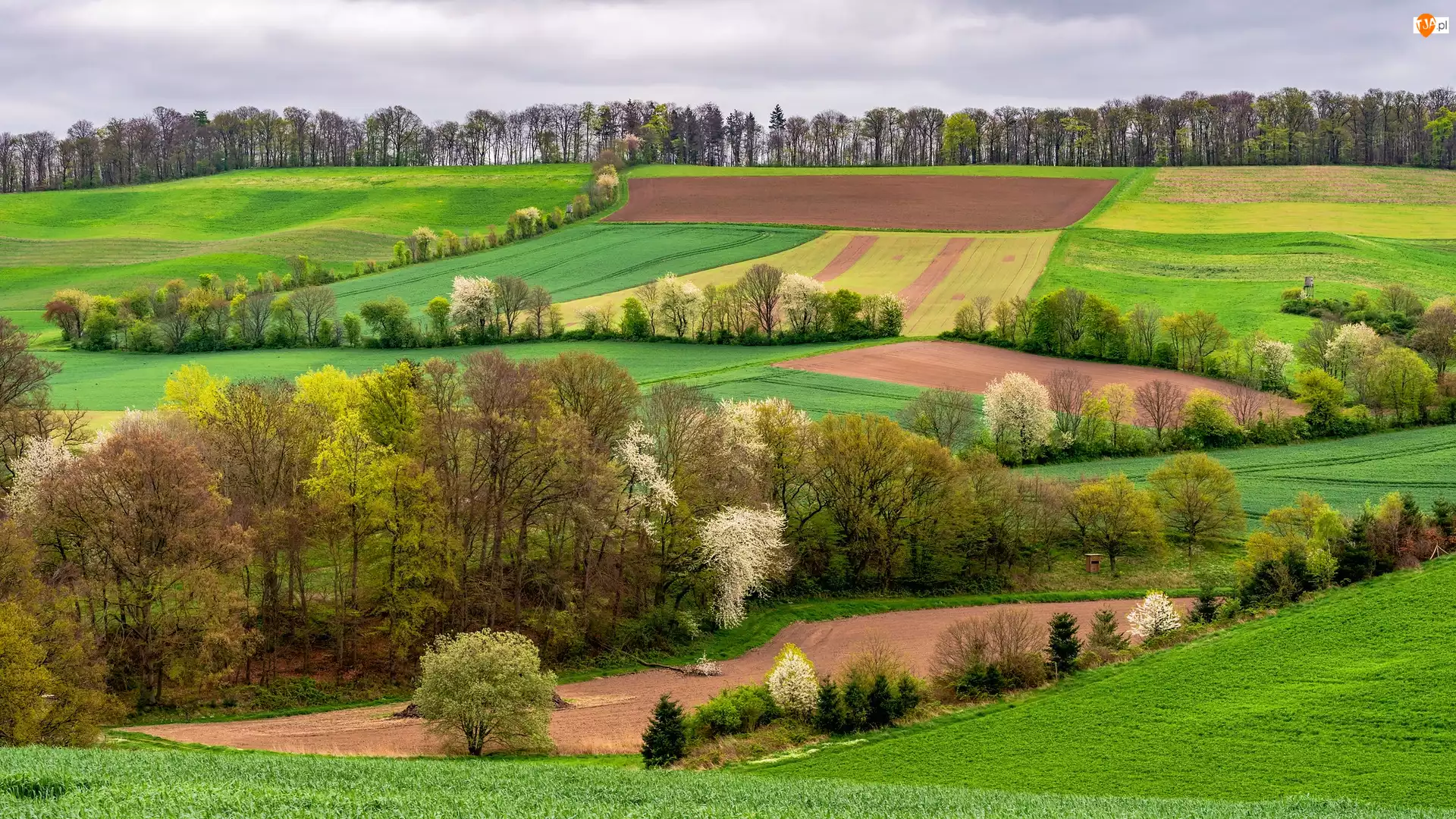Nadrenia Palatynat, Eifel, Łąki, Niemcy, Drzewa, Pola, Wiosna