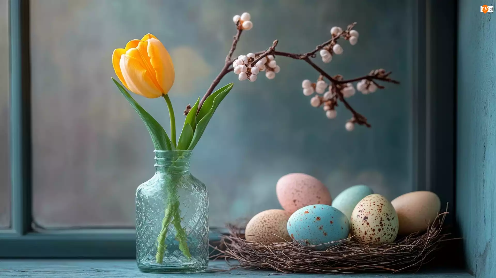 Pisanki, Wielkanoc, Tulipan, Słoik, Gniazdko, Gałazka