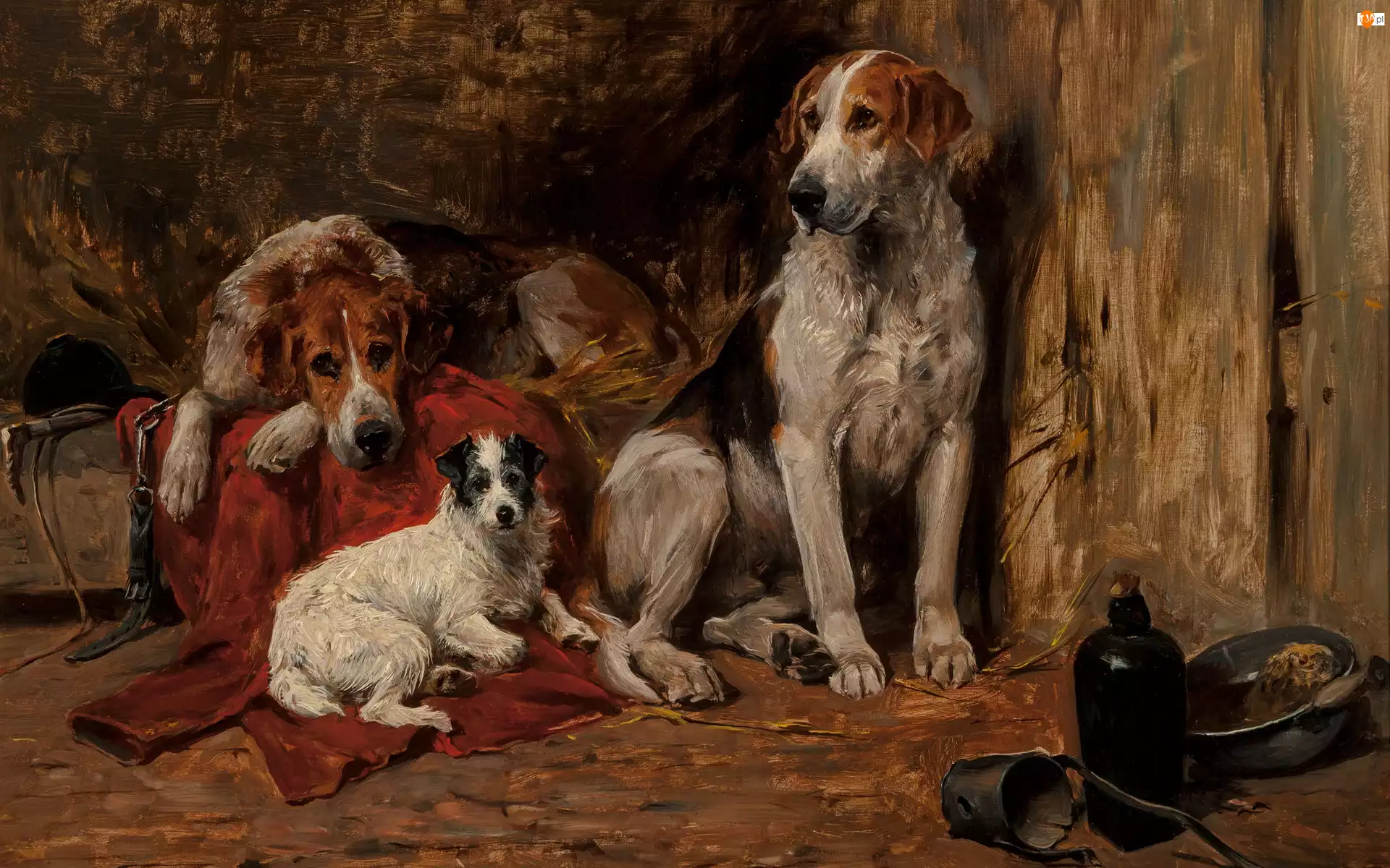 Jack Russell terrier, Psy, Obraz, John Emms, Foxhound, Malarstwo