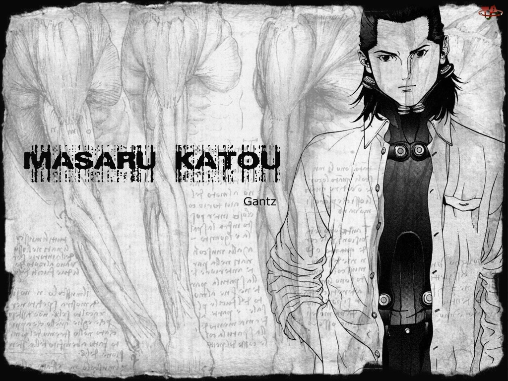 napis, Gantz, facet, ciało, mięśnia