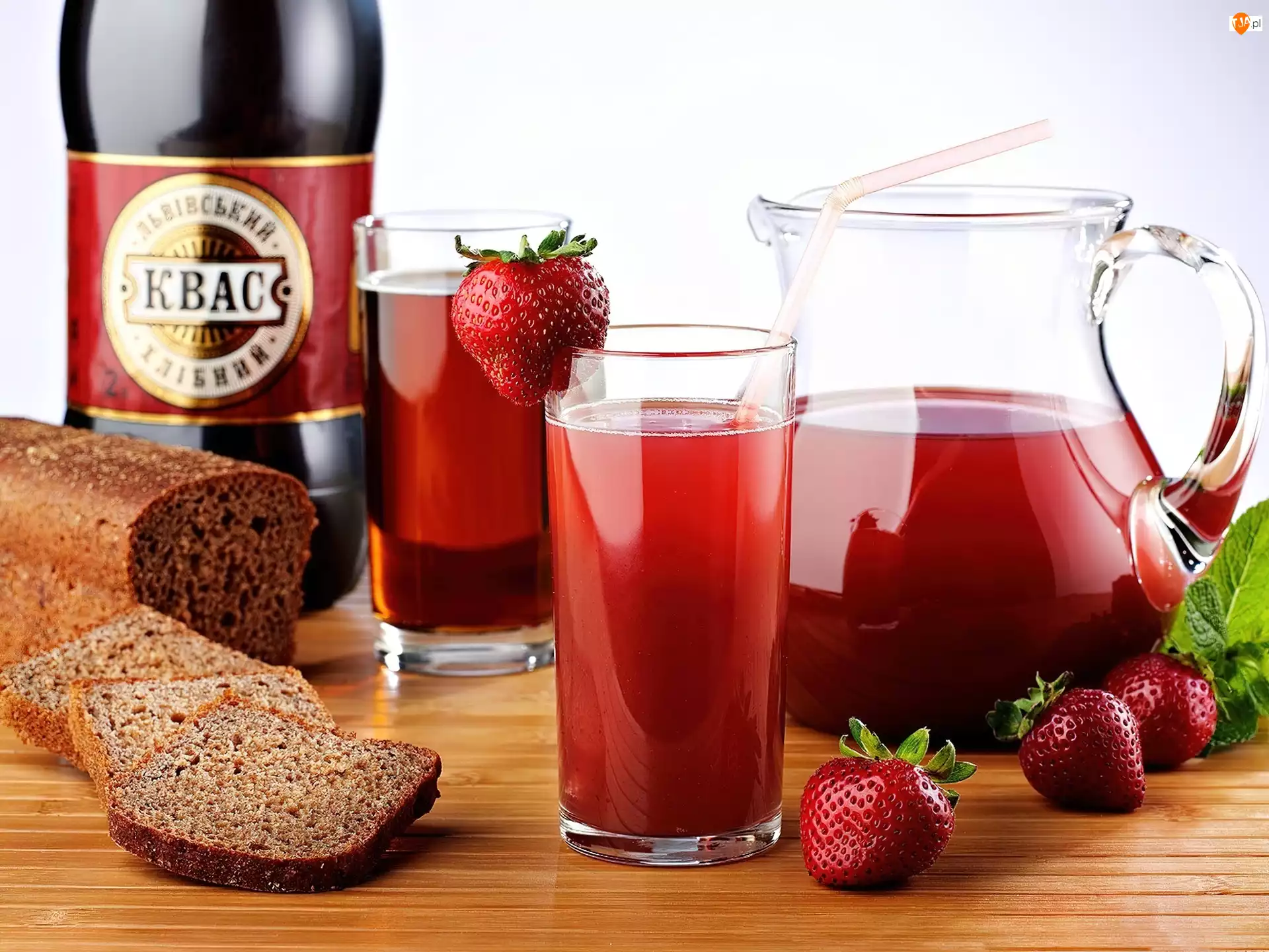 Napój, Sok, Naczynia, Truskawkowy, Chleb
