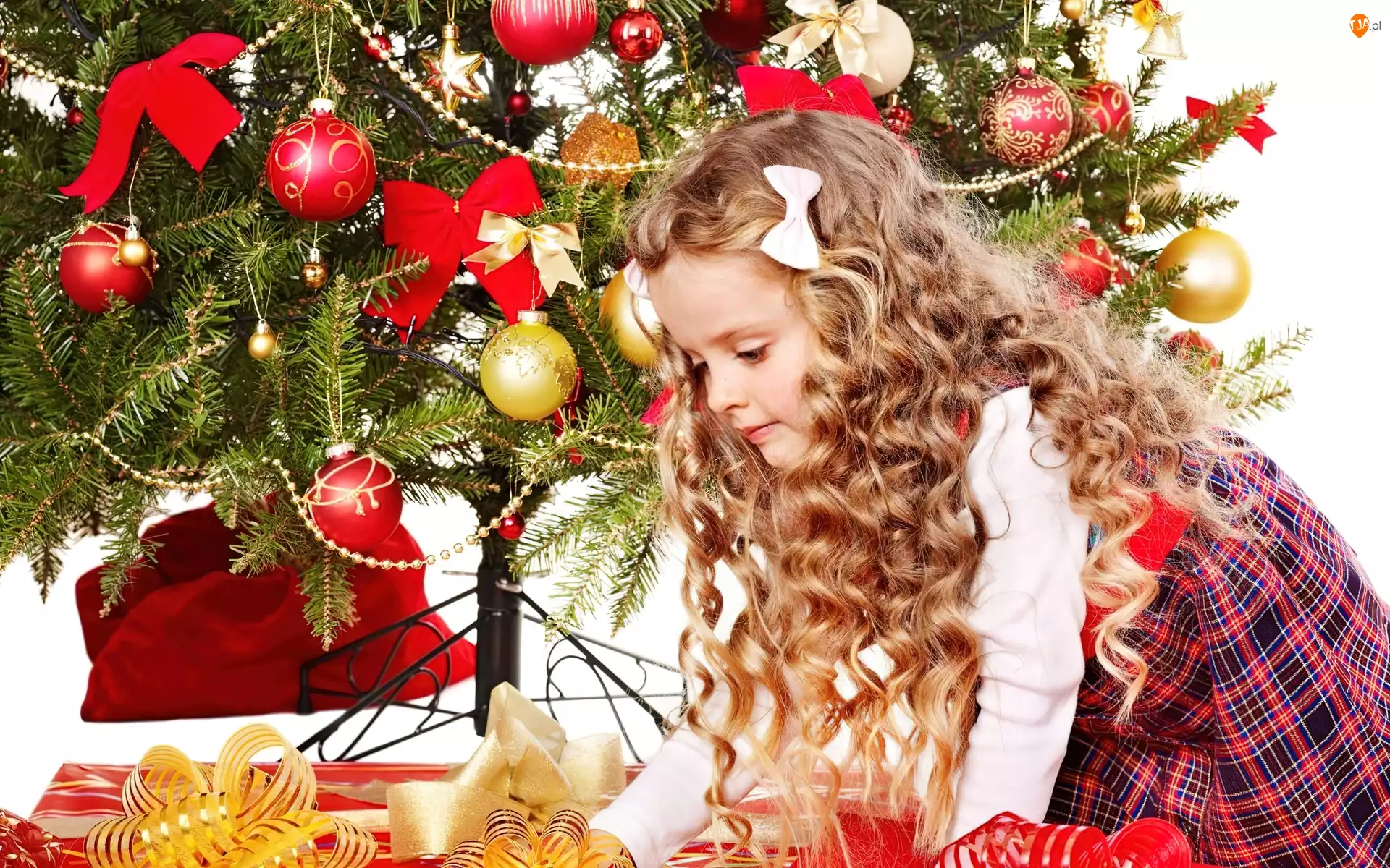 Narodzenie, Choinka, Dziewczynka, Prezenty, Boże,