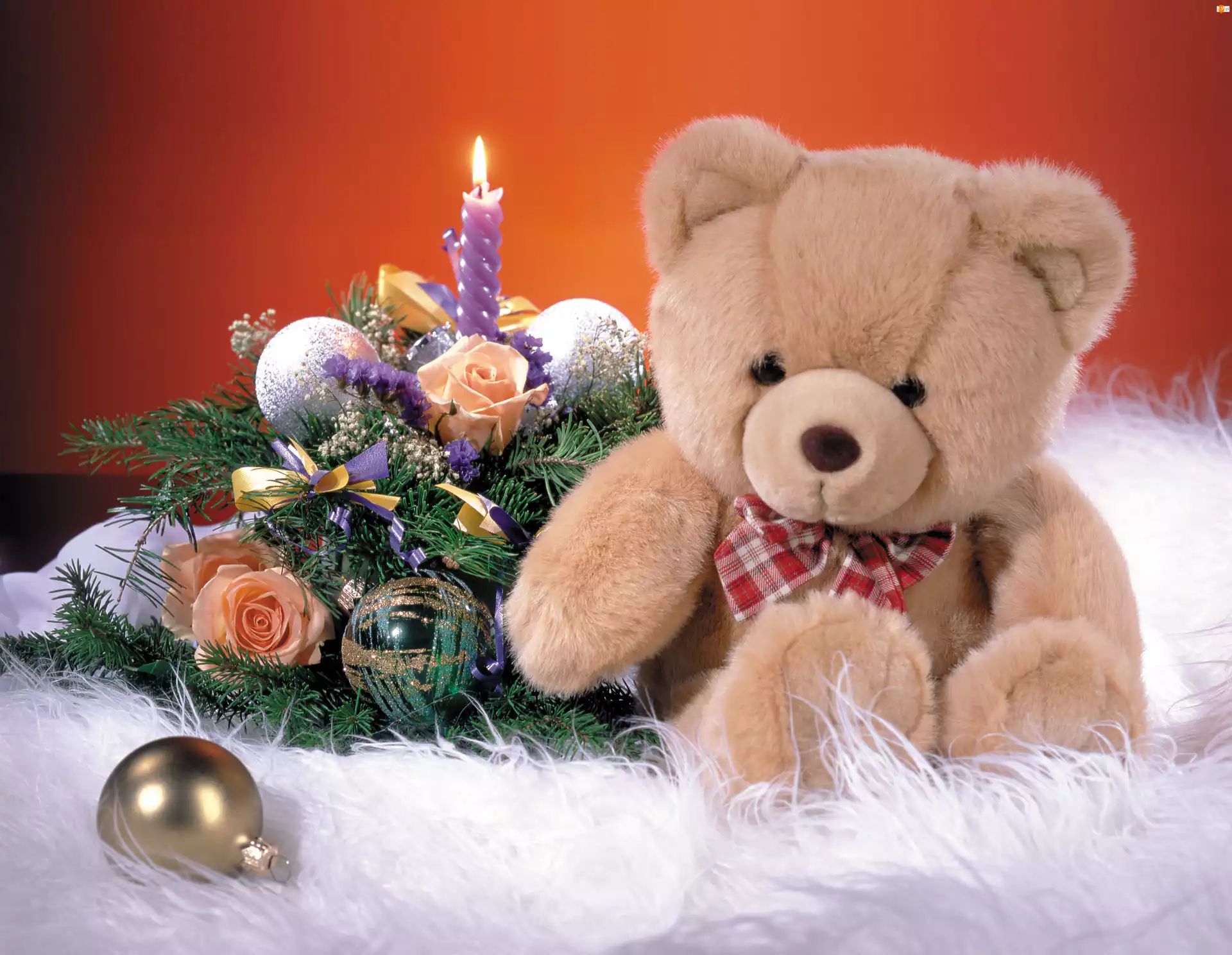 Narodzenie, Pluszowy, Święta, Miś, Boże, Stroik
