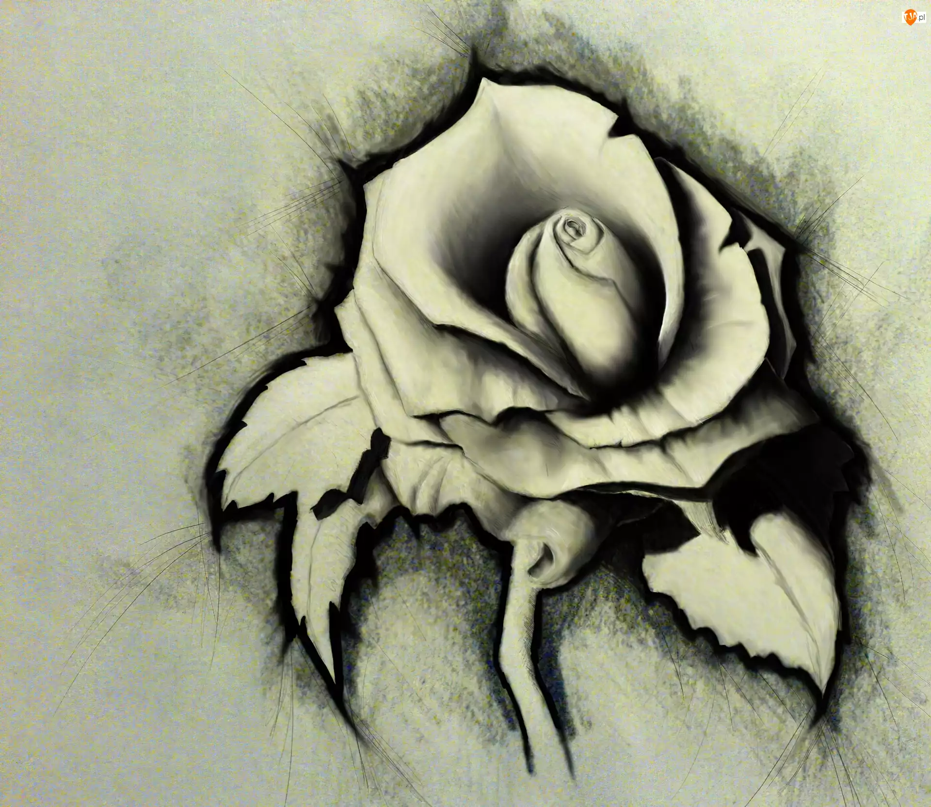 Naszkicowana, Papier, Róża, Szary