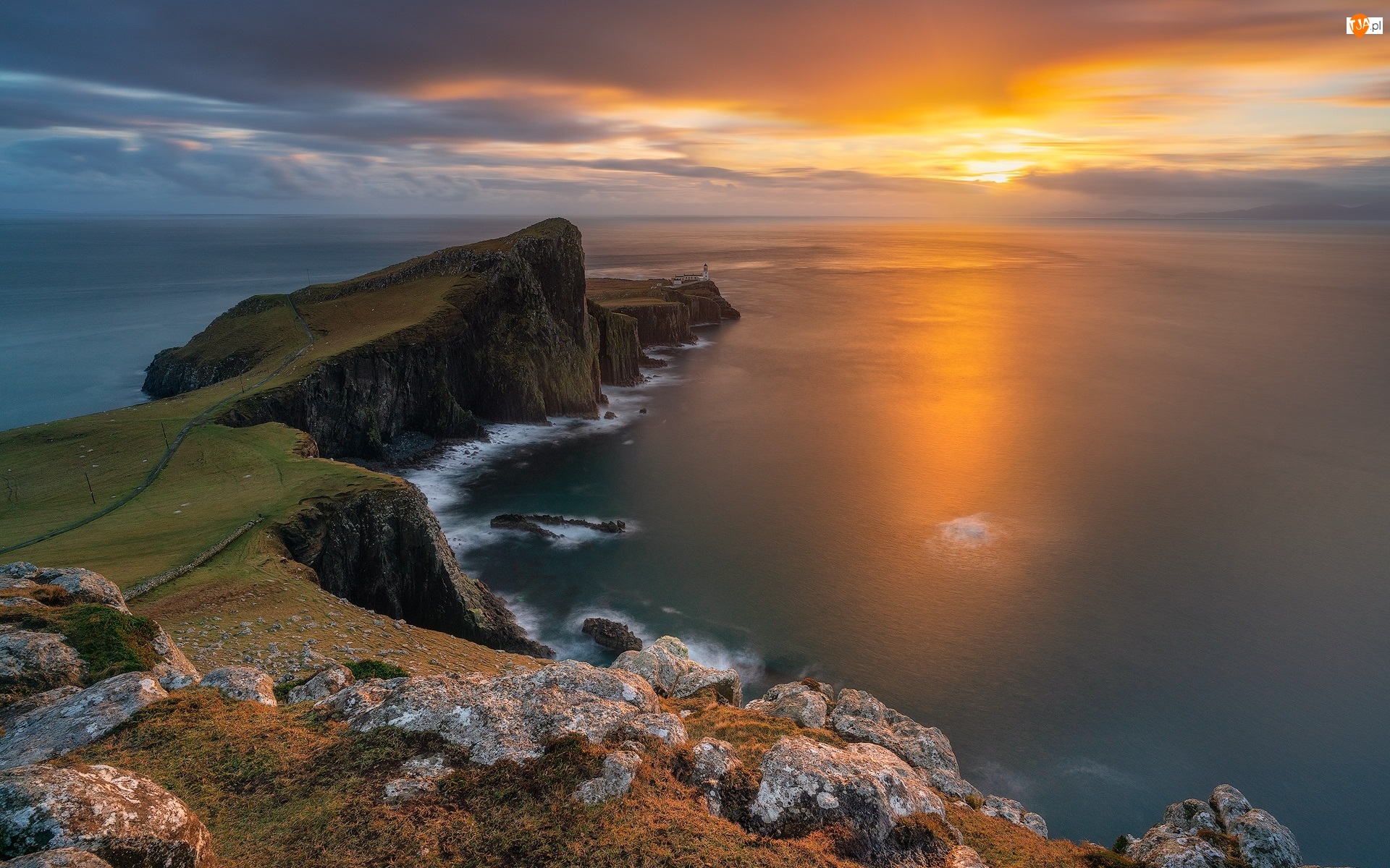 Neist Point Lighthouse, Wybrzeże, Wyspa Skye, Pó