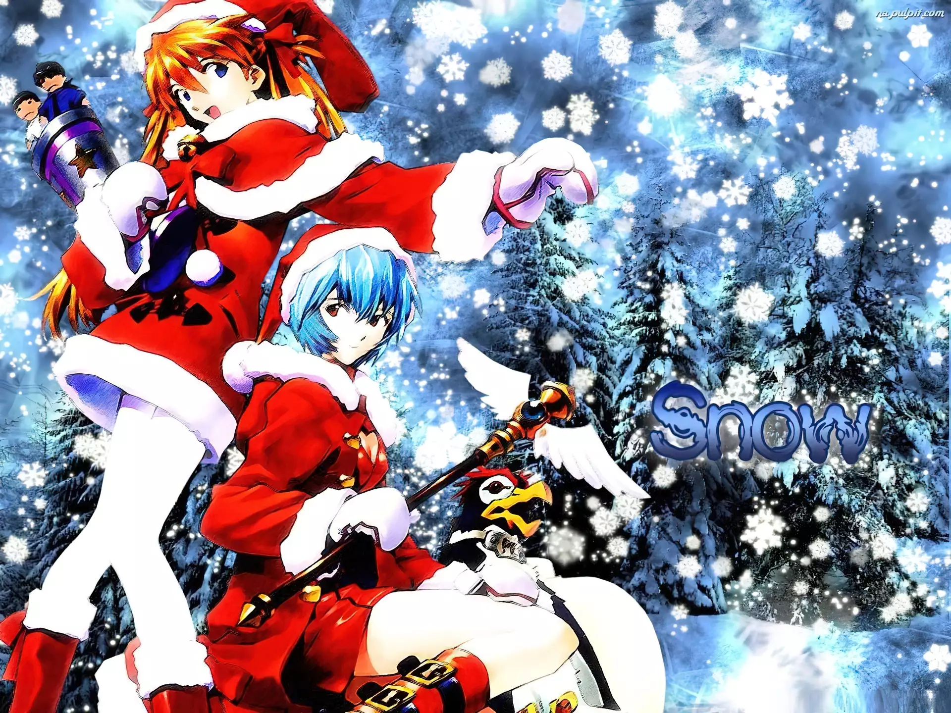 Neon Genesis Evangelion, choinka, snow, kobiety