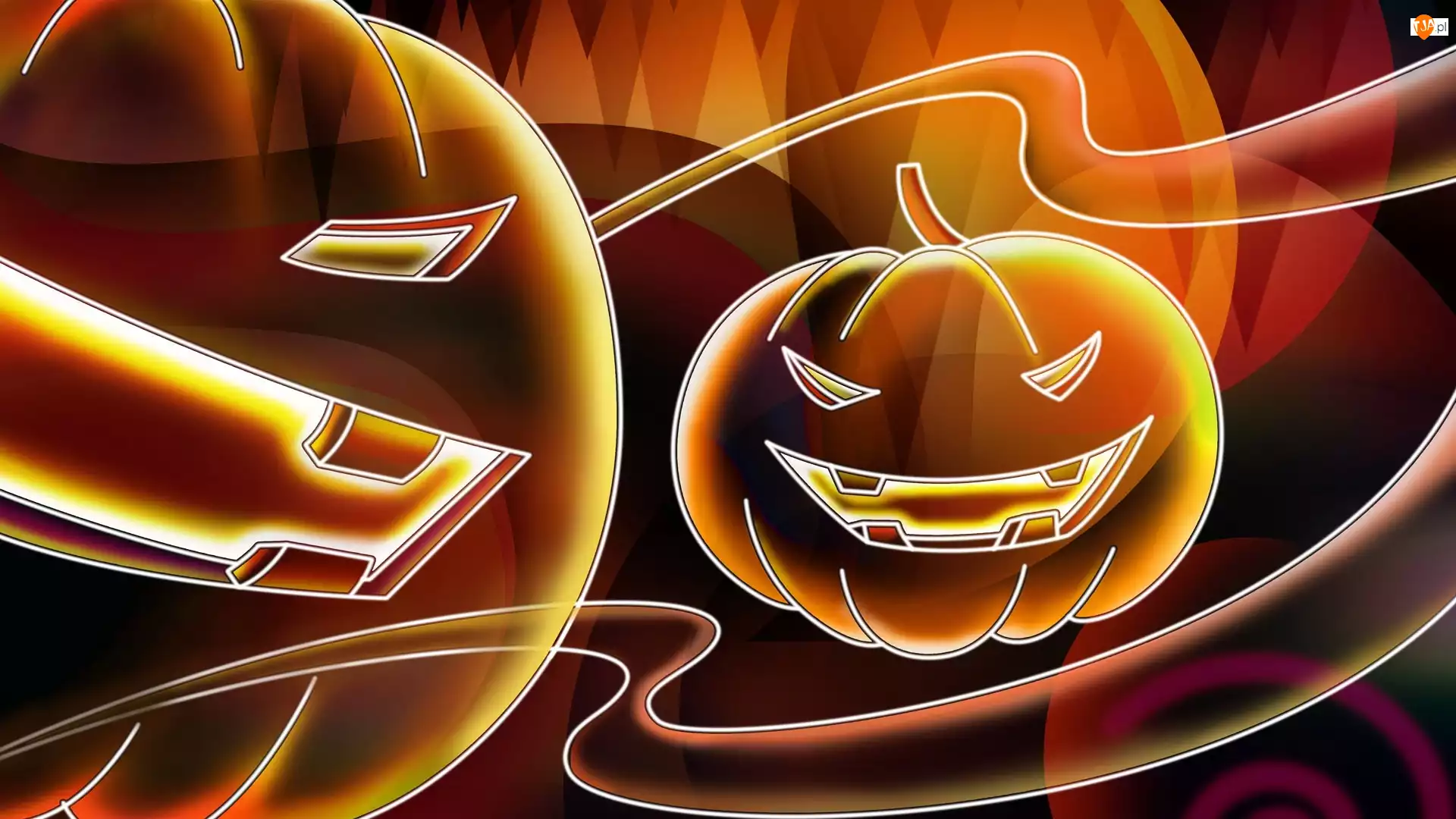 Neonowe, Halloween, Uśmiechnięte, Dynie