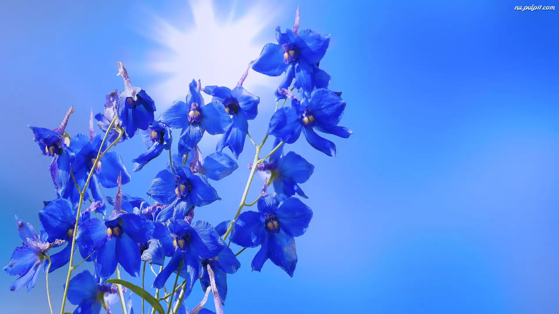 Niebieska ostróżka na tle nieba