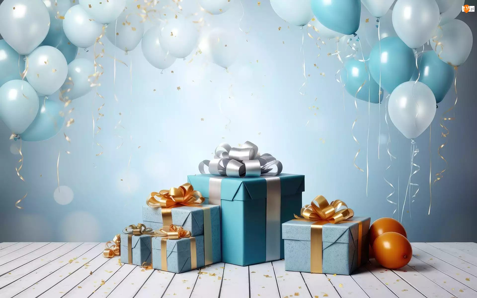 Niebieskie, Białe, Prezenty, Urodziny, Baloniki, Kokardy