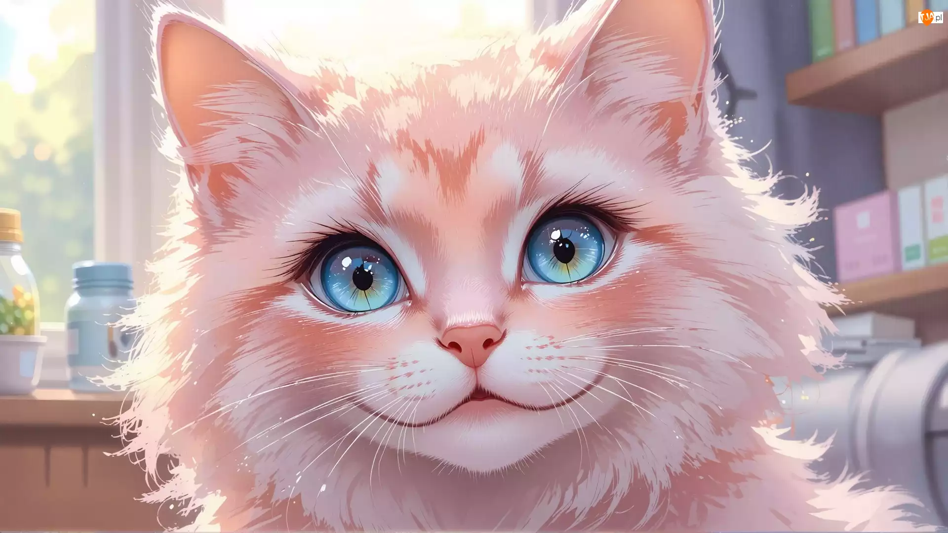 Niebieskie, Grafika, Kot, Różowy, Oczy