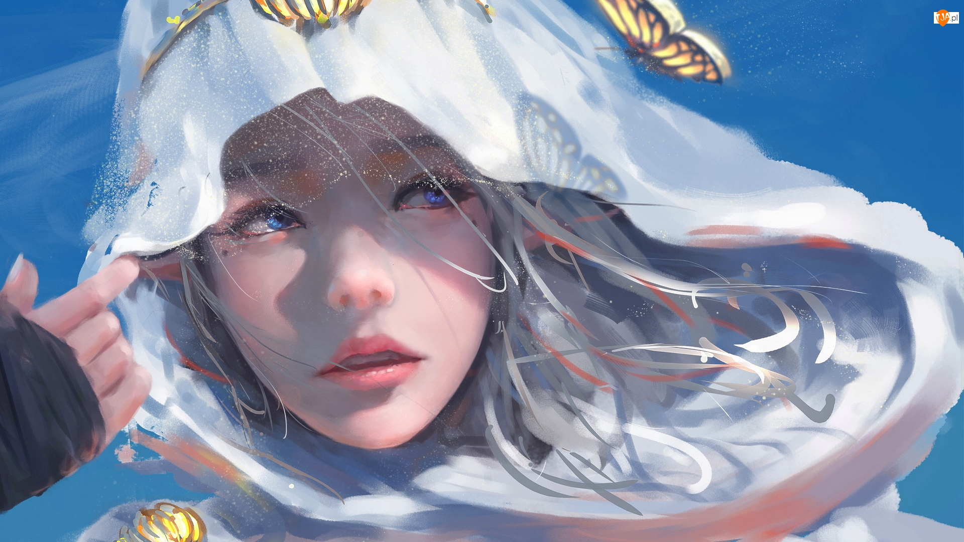 Niebieskie, Kaptur, Dziewczyna, Grafika, Oczy
