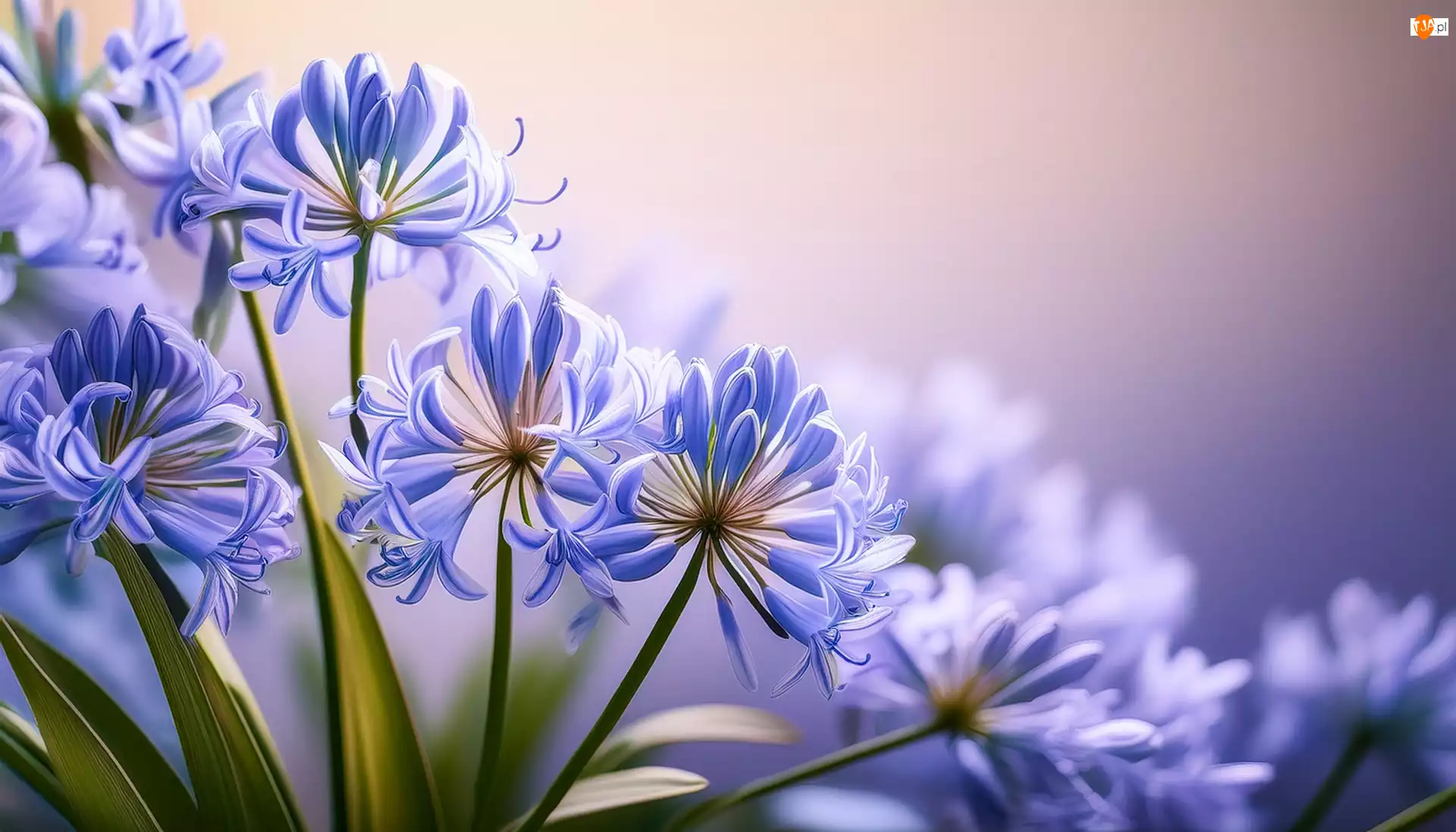 Niebieskie, Kwiaty, Liście, Tło, Agapant, Zbliż