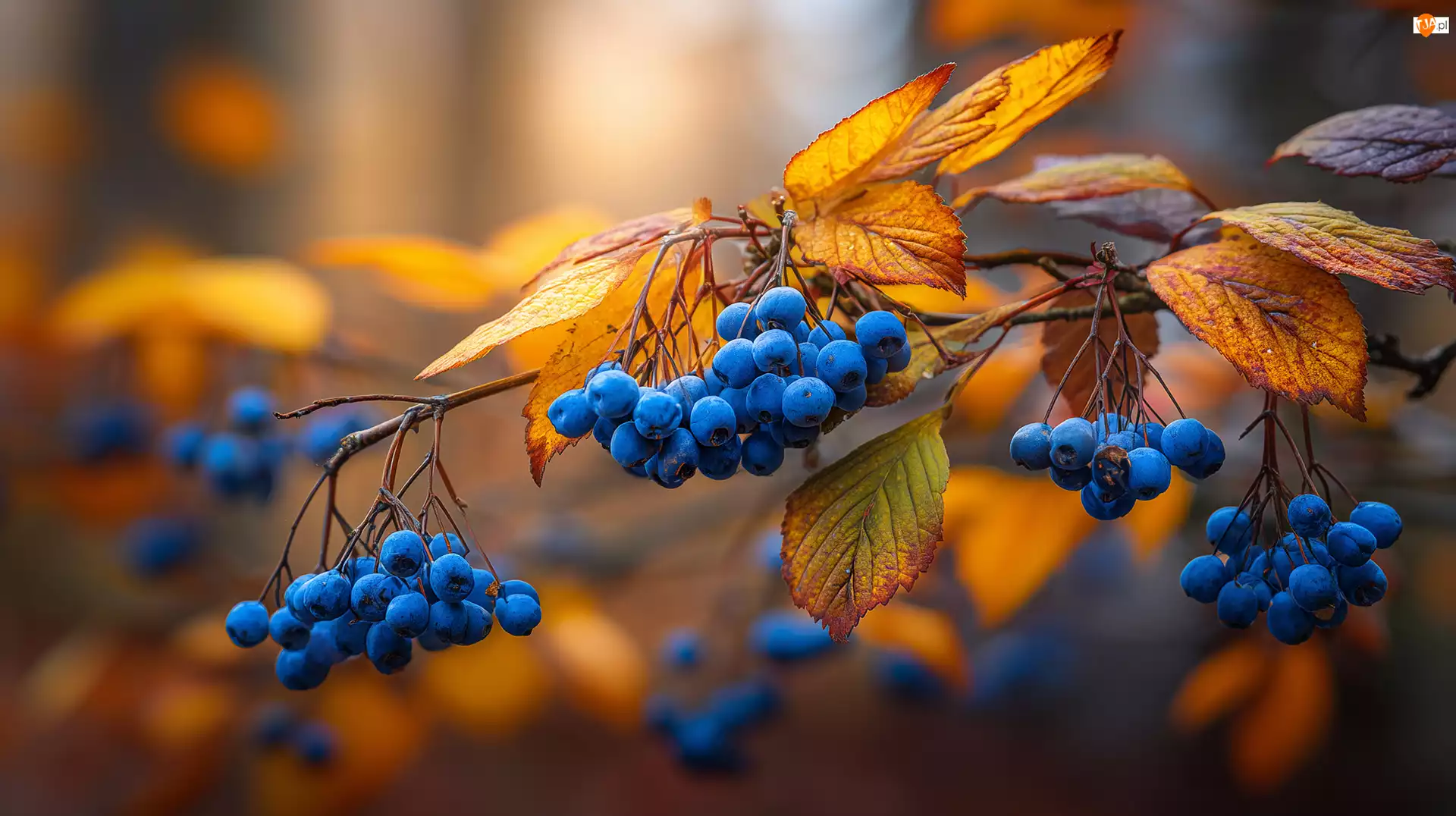 Owoce, Niebieskie, Jesienne, Grafika AI, Jagody, Liście