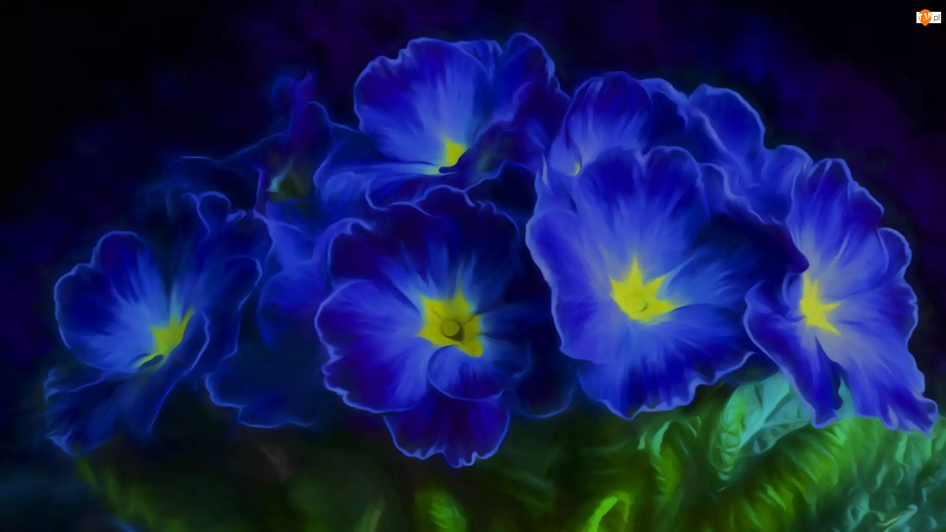 Niebieskie, Grafika 2D, Kwiaty, Prymulki