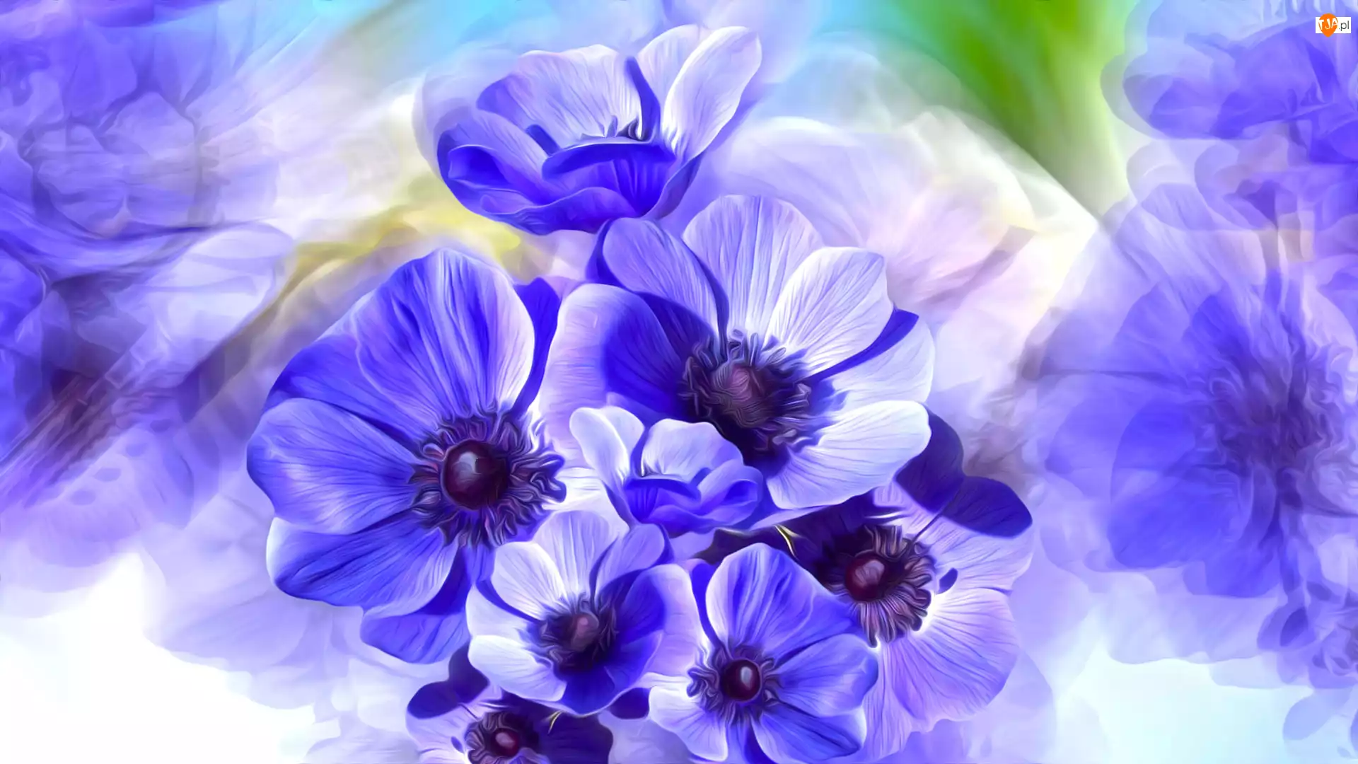 Grafika, Kwiaty, Niebieskie, Zawilce