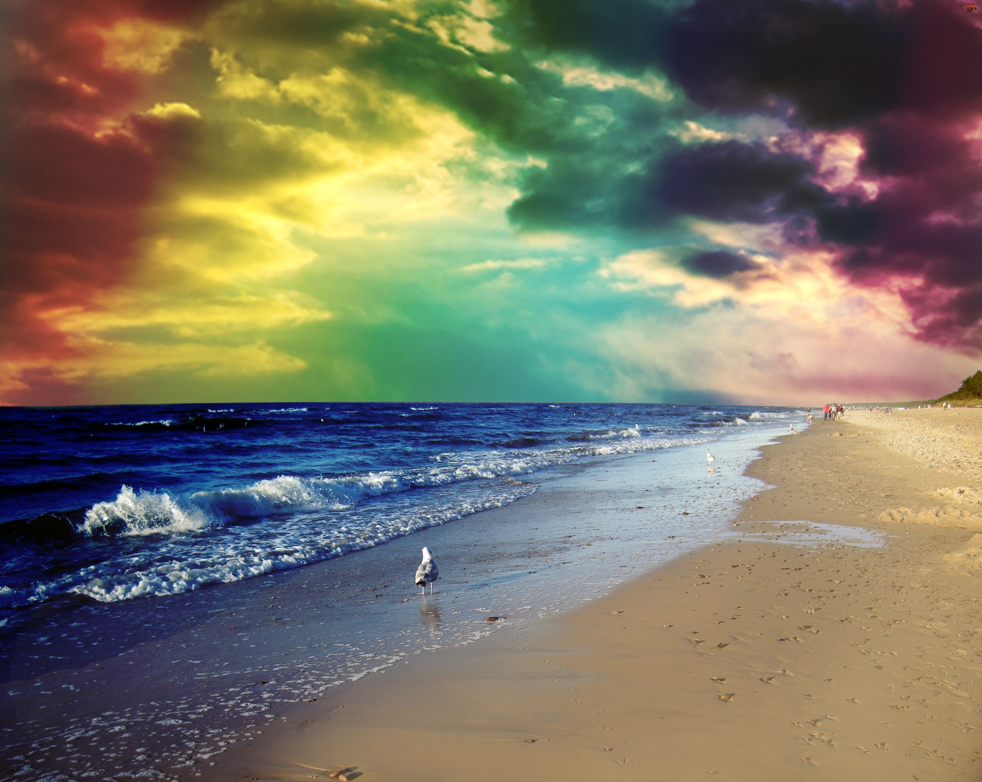 Niebo, Chmury, Plaża, Morze, Kolorowe