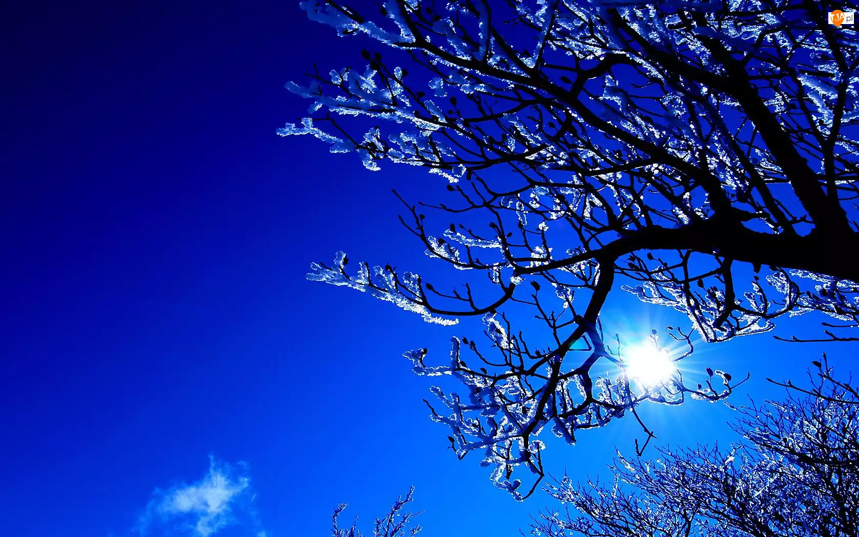 Niebo, Drzewo, Promienie, Oszronione, Słońca
