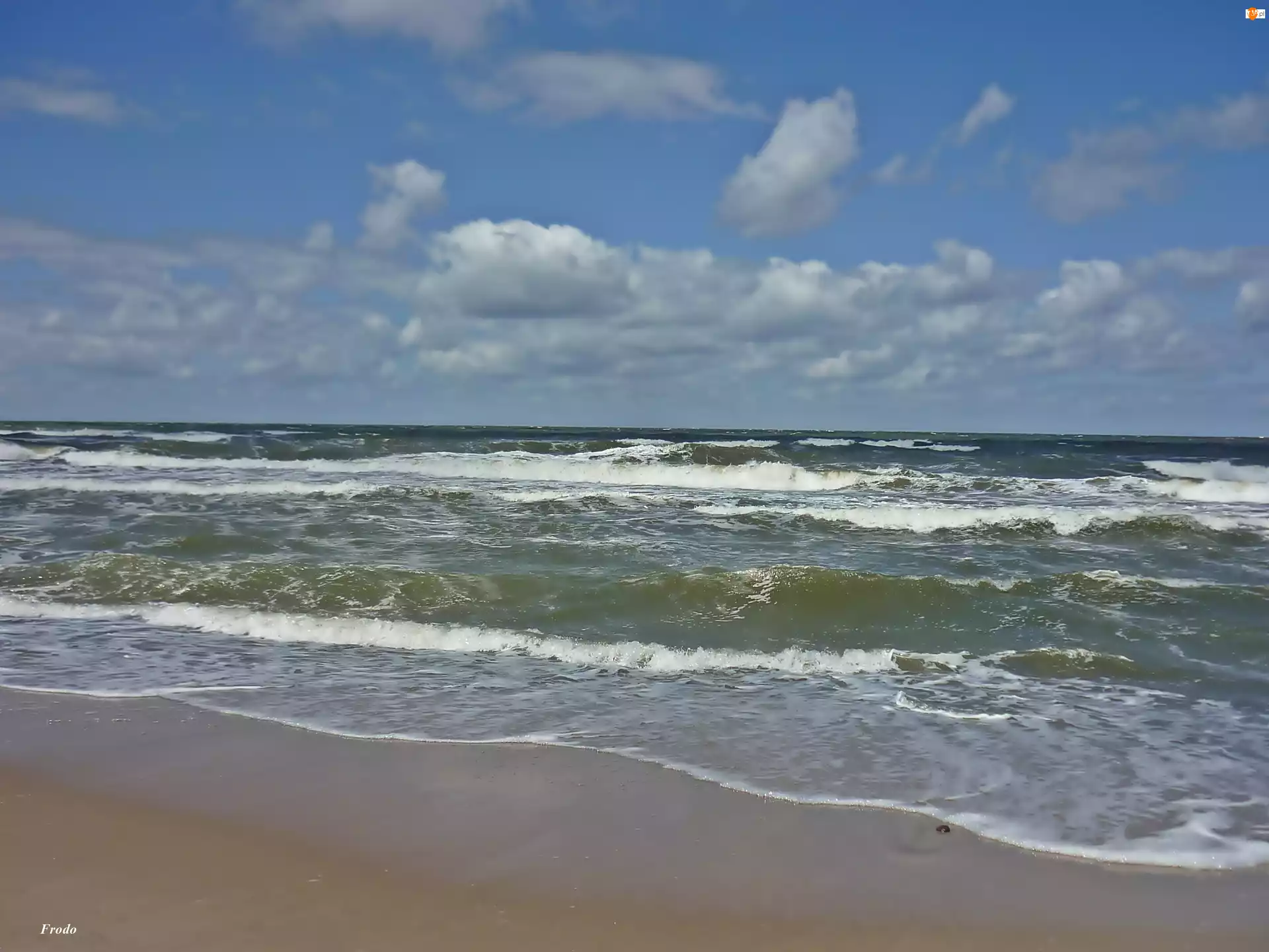 Niebo, Fale, Morze, Lato, Plaża, Chmury