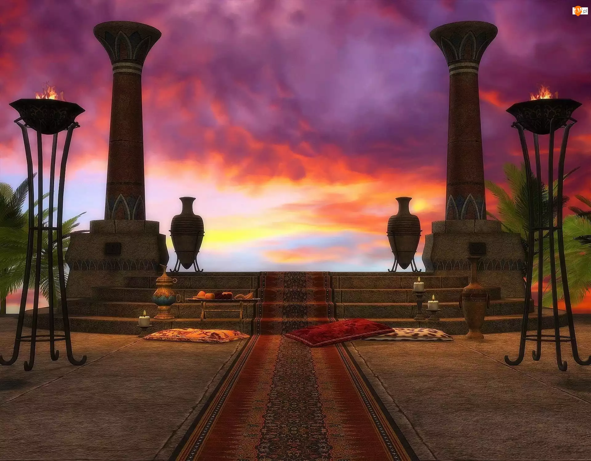 Niebo, Kolumny, Schody, Dywan, Świątynia, Znicze