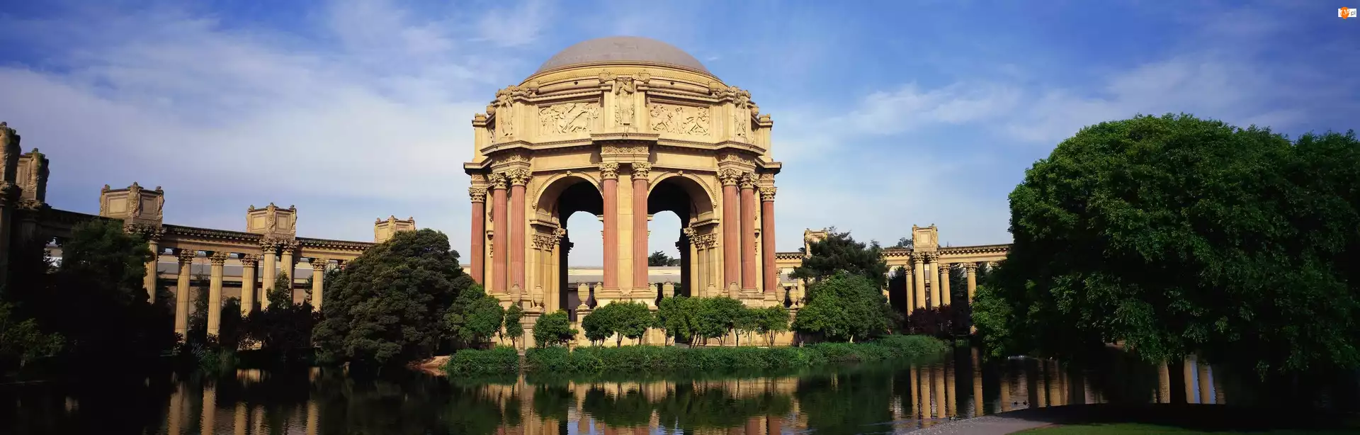 Niebo, Kolumny, Staw, Kopuła, Drzewa