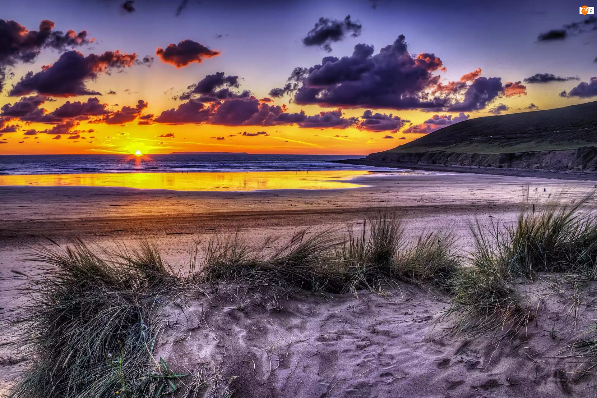 Niebo, Ocean, Zachód Słońca, Plaża