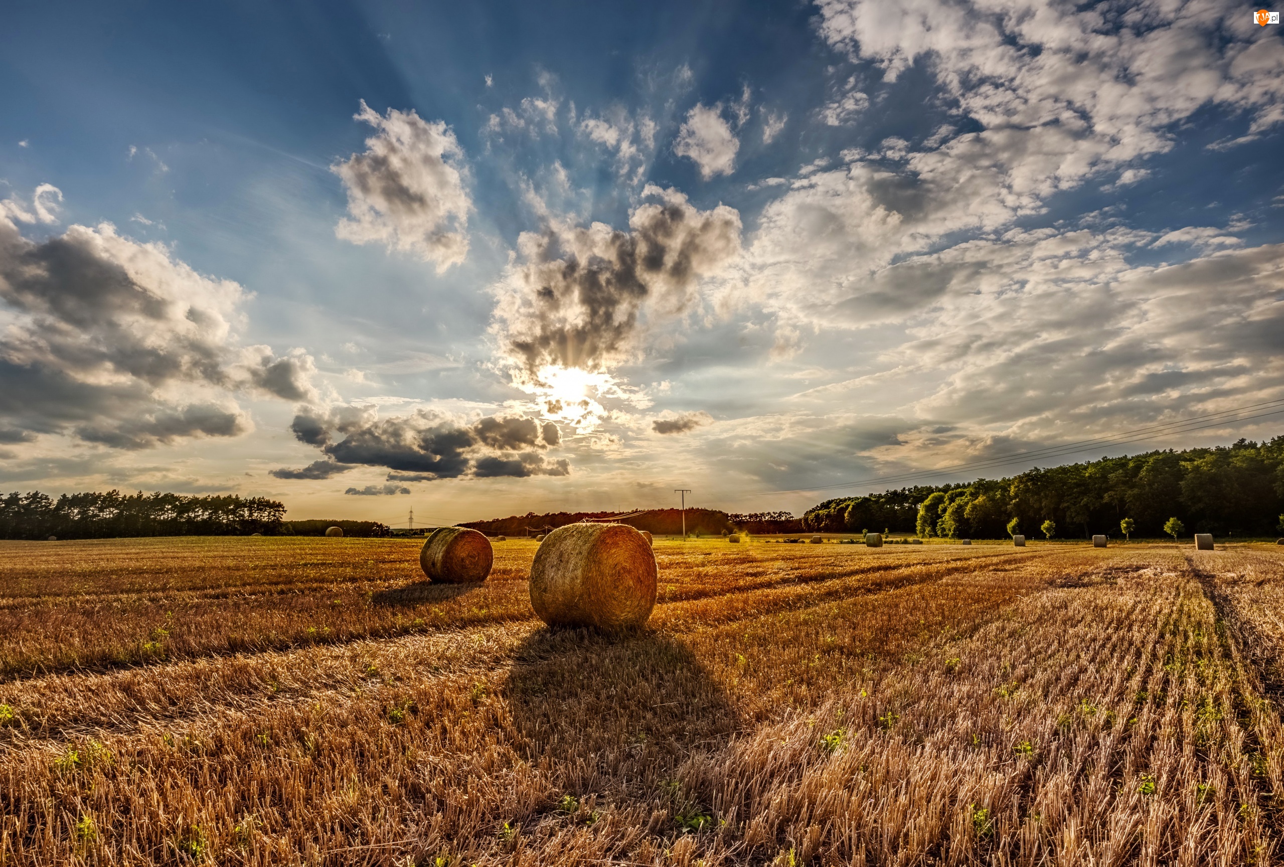 Niebo, Pole, Słomy, Baloty, Zachmurzone