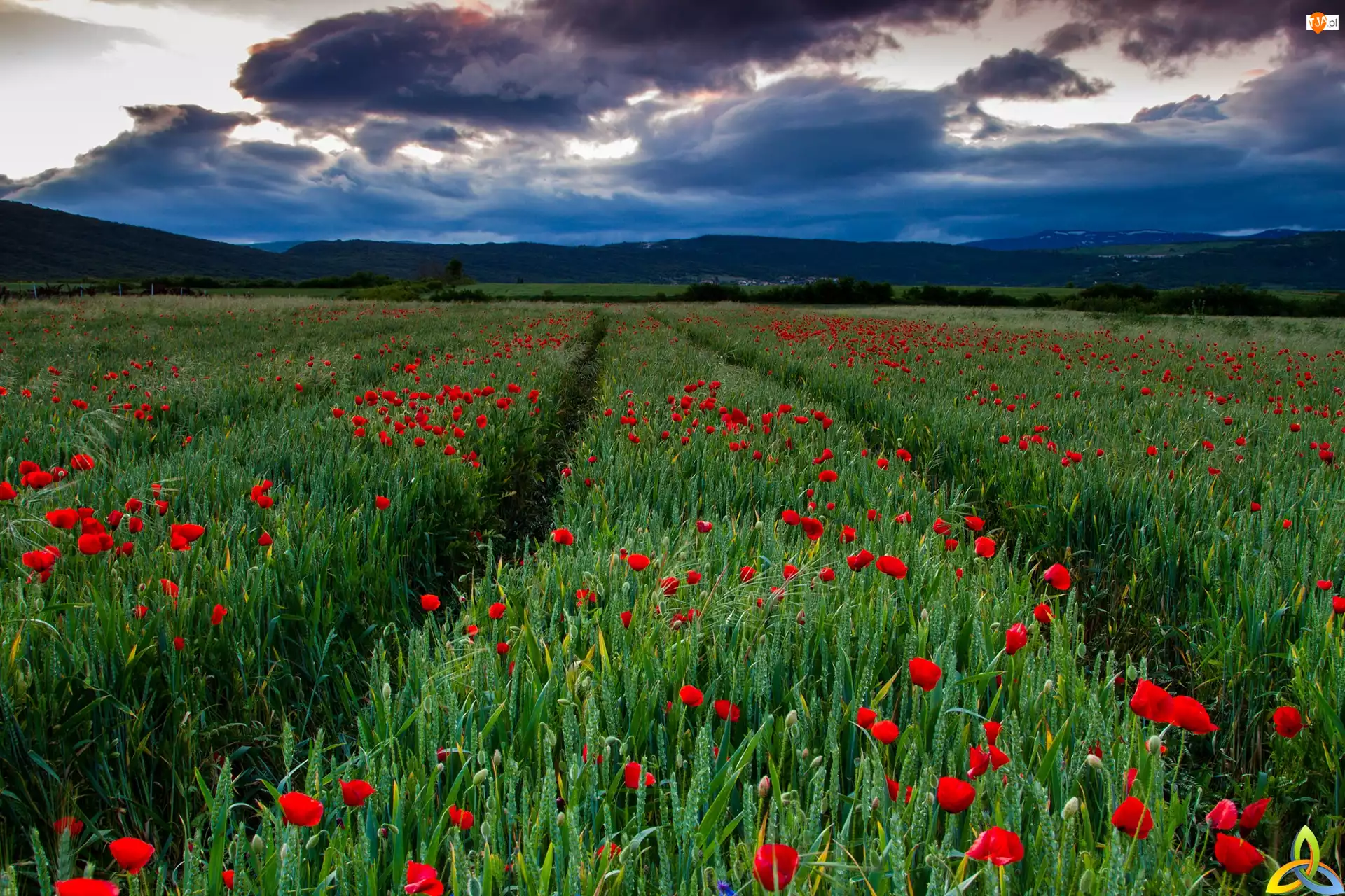 Niebo, Polne, Pole, Maki, Zachmurzone, Zboże