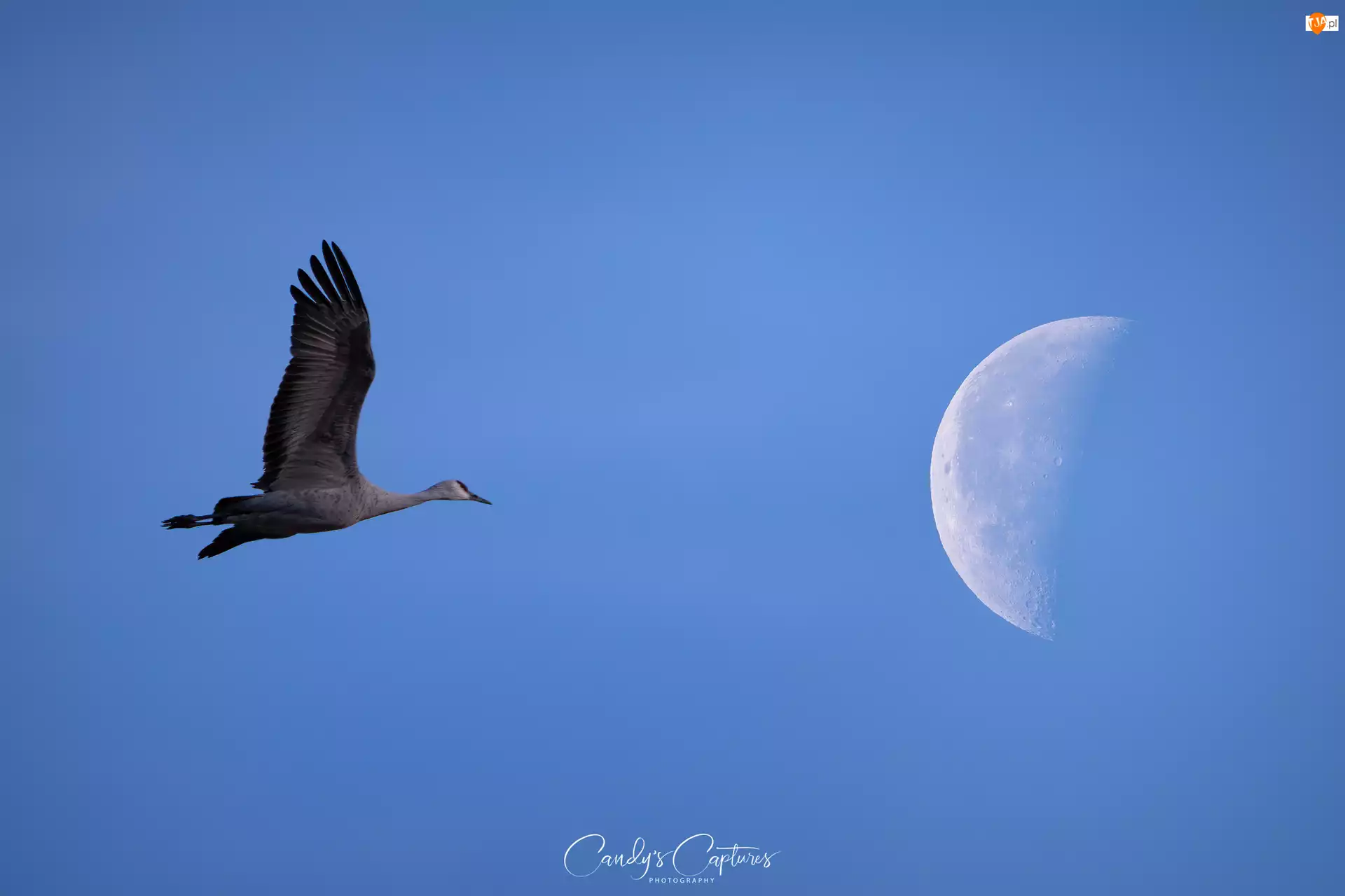 Niebo, Ptak, Żuraw kanadyjski, Księżyc