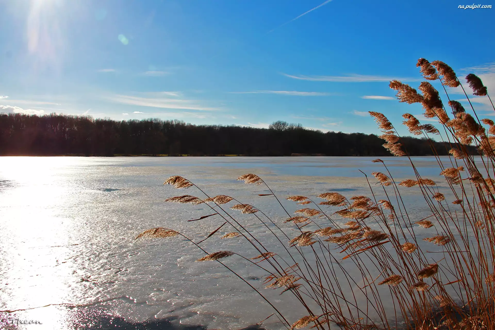 Niebo, Zamarznięte, Sucha, Jezioro, Trzcina