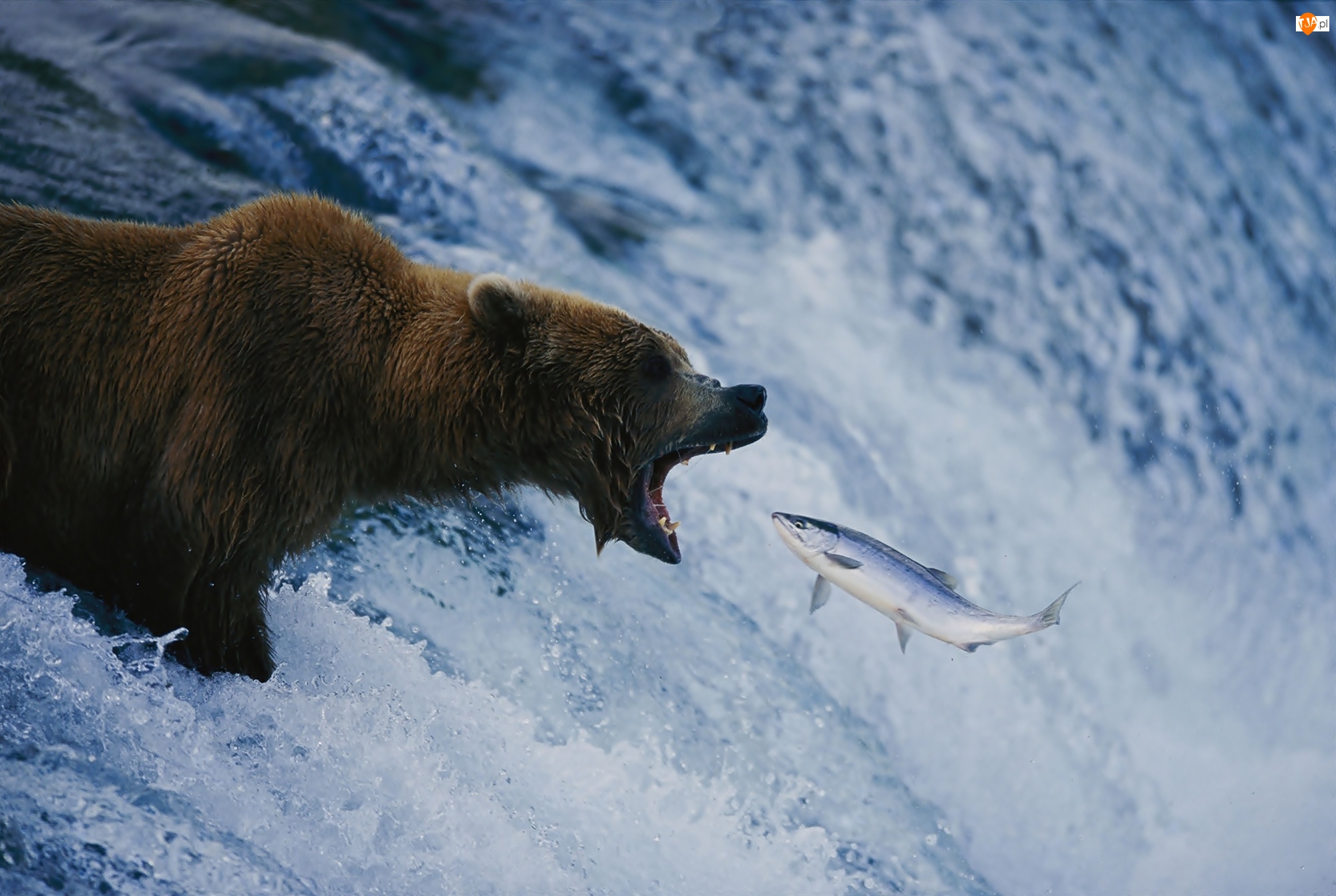 Niedźwiedź, Wodospad, Brunatny, Ryba