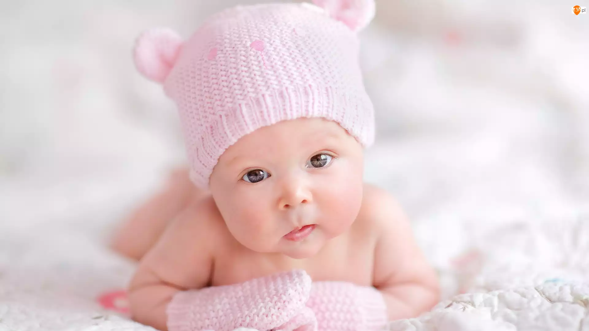 Niemowlę, Dziecko, Czapeczka, Dzianina, Różowa, Rękawiczki